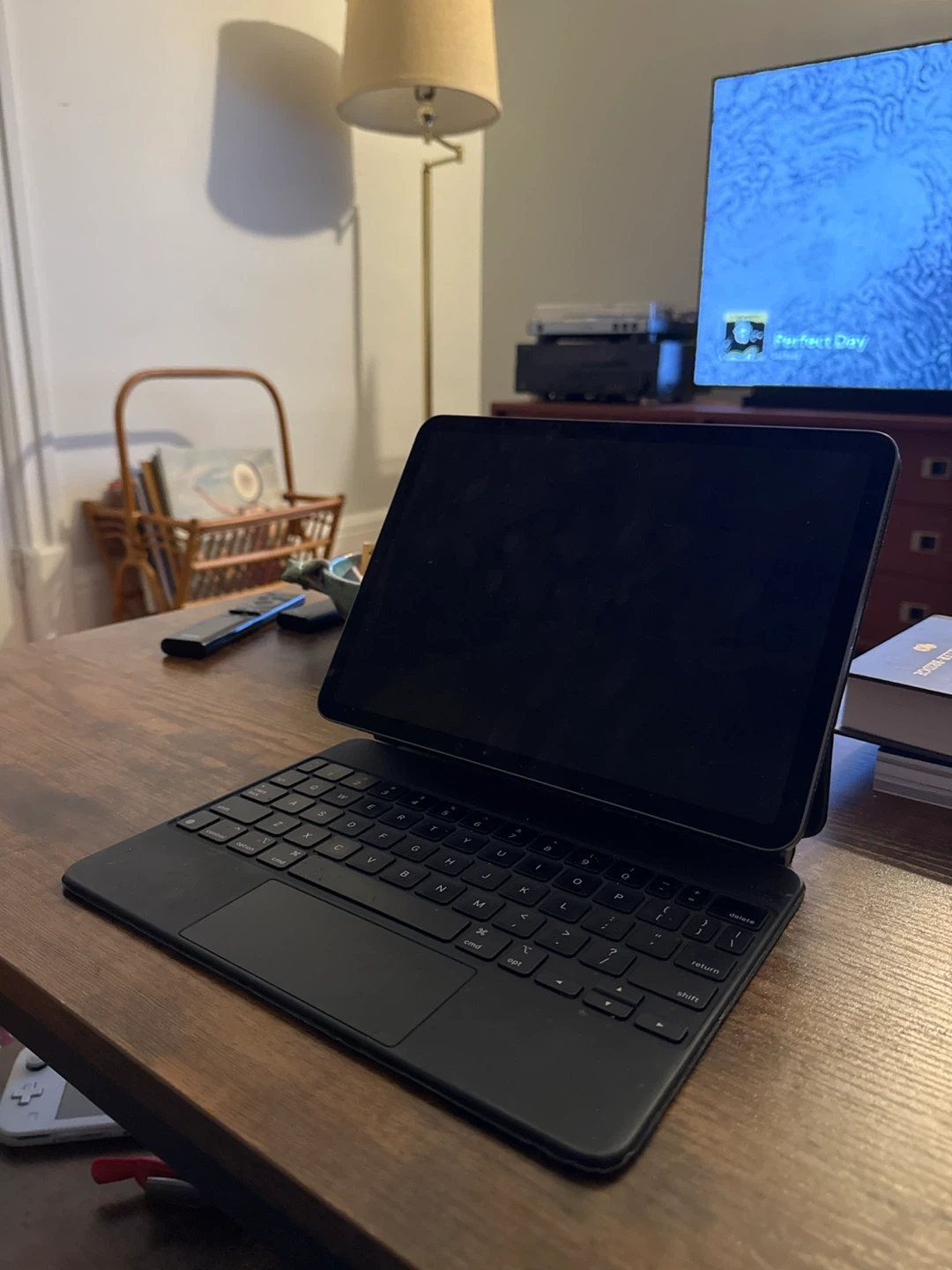 Selling an Apple iPad Air (4th generation). It has 256GB of storage. It's in great condition and it comes with a genuine Apple Keyboard!