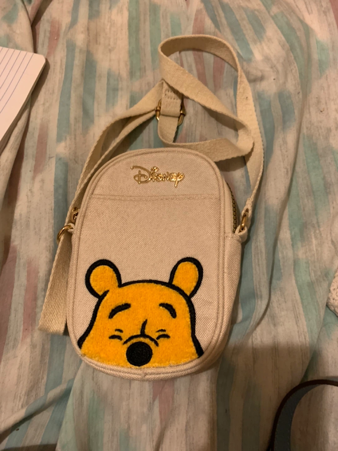 Super cute Winnie the Pooh crossbody bag from Disney! It features an adjustable strap and a zippered closure. The bag is in great condition and ready for a new home