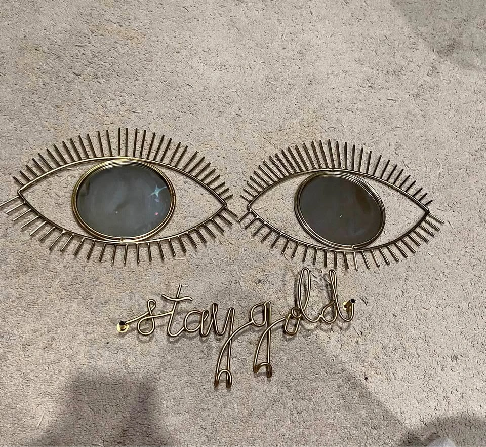 Gold Decor Set - 2 Eye Mirrors & 1 Decorative Hook