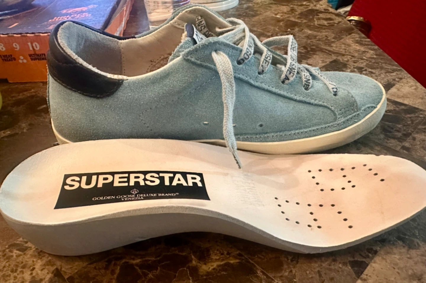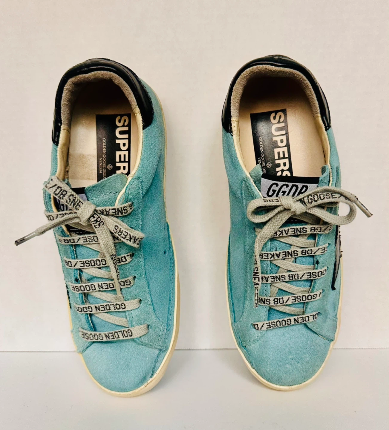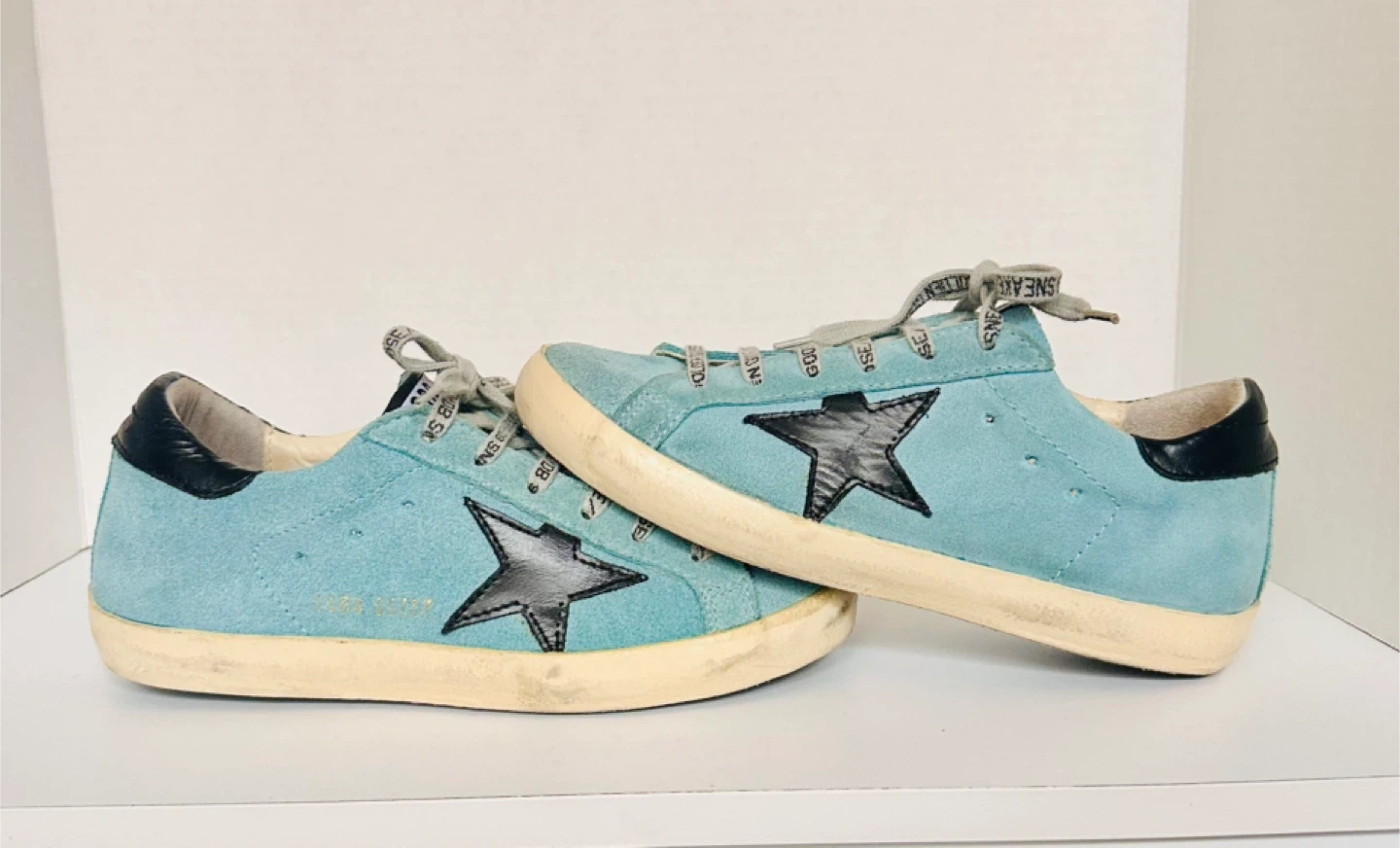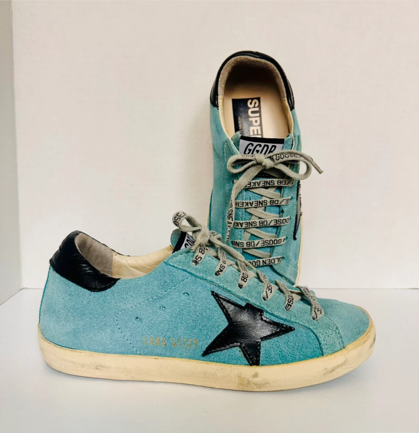 Selling a pair of Golden Goose Superstar sneakers in a lovely light blue suede! They feature the iconic star design and a comfortable fit. Size 36