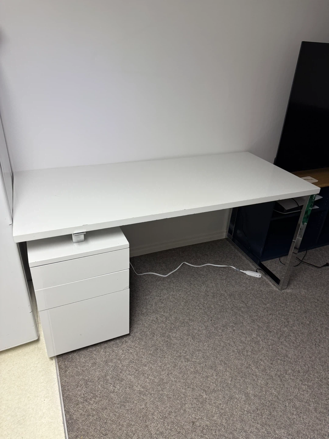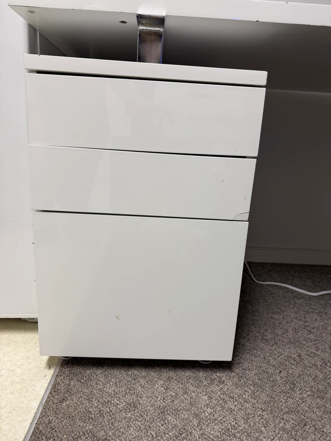 Minor scuffs on top, top of the drawer not secure, second drawer cracked.