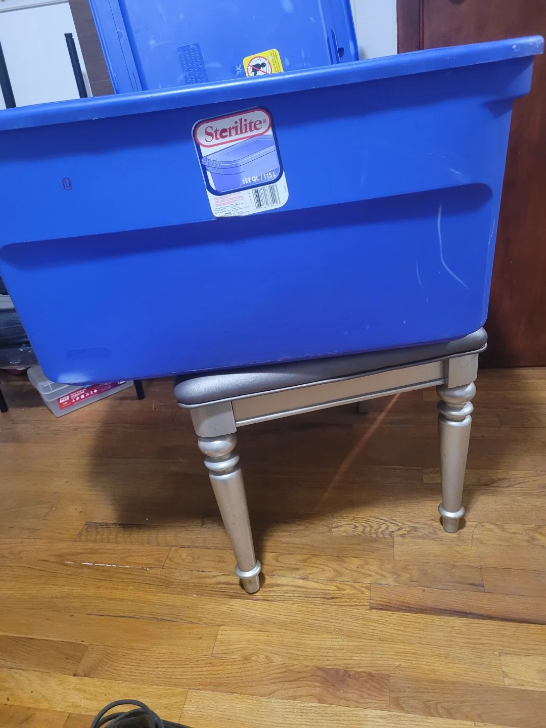 Selling a Sterilite 120 Qt storage tote in blue! It's great for storing all sorts of items. Perfect for organizing your home or garage