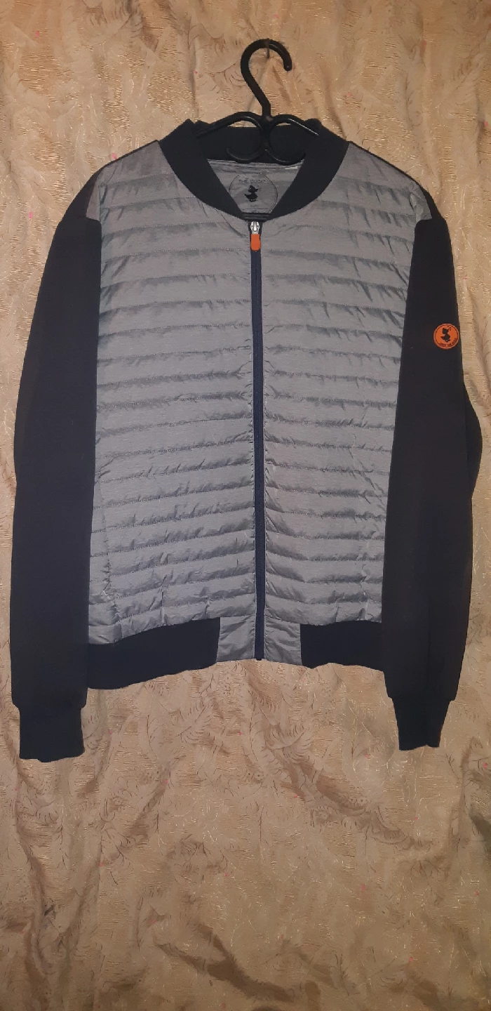 Here's a Save The Duck padded bomber jacket! It's in great shape and ready for a new home. It features a stylish design and comfortable fit, perfect for adding a touch of flair to your wardrobe.