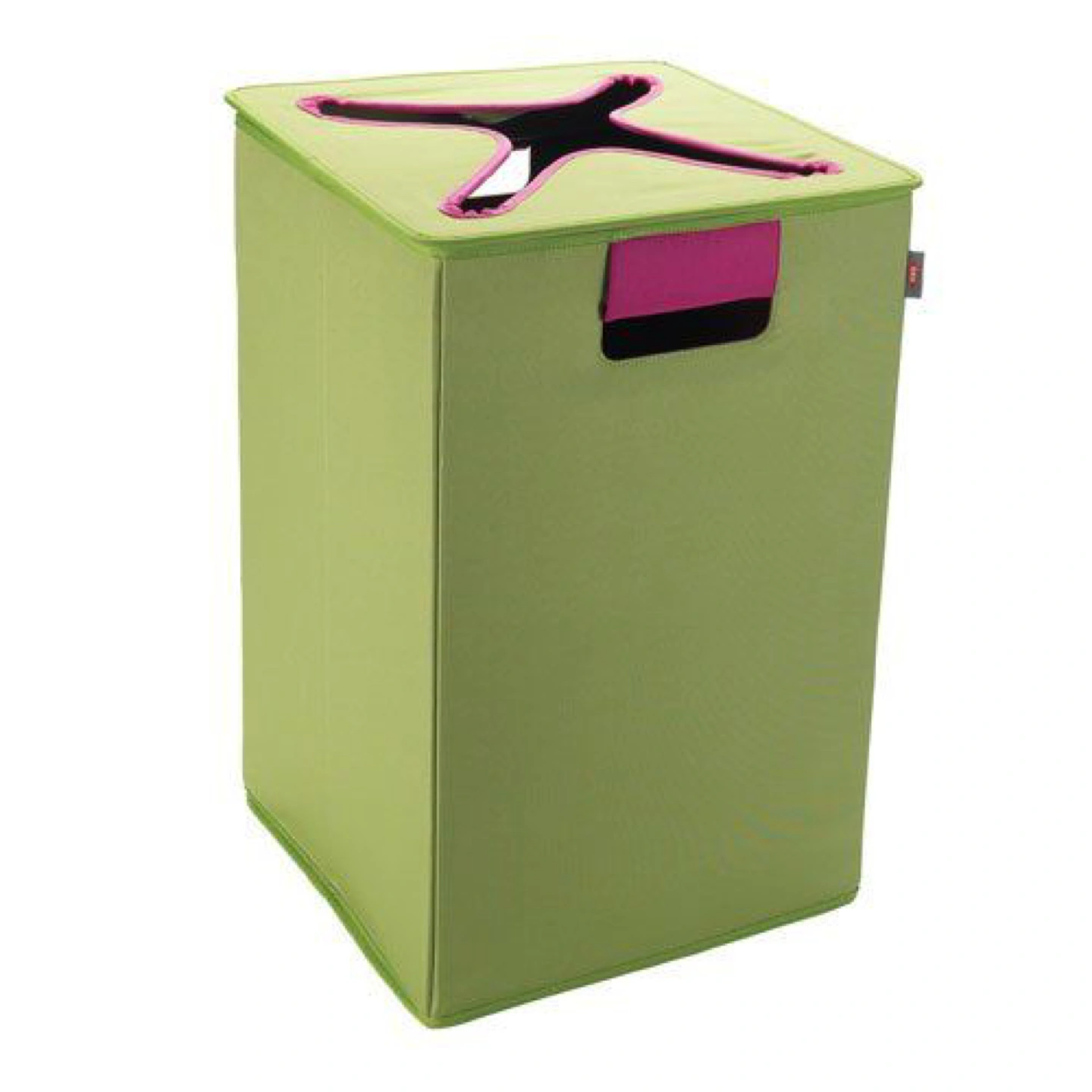 This OXO hamper features a unique lid constructed of four flaps that flex down when clothes are placed in the Hamper, then automatically flex back into position to contain and conceal the dirty laundry inside.