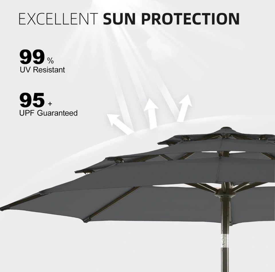 π€οΈ HOMSHADE 9FT 3-Tier Patio Umbrella β Dark Gray, UV50+, New (S