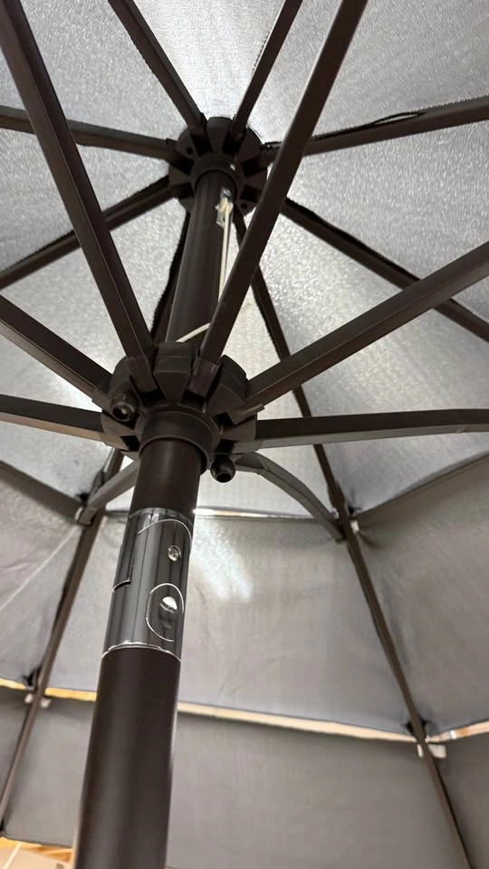 β’ Durable 8-rib steel frame, easy crank & tilt system