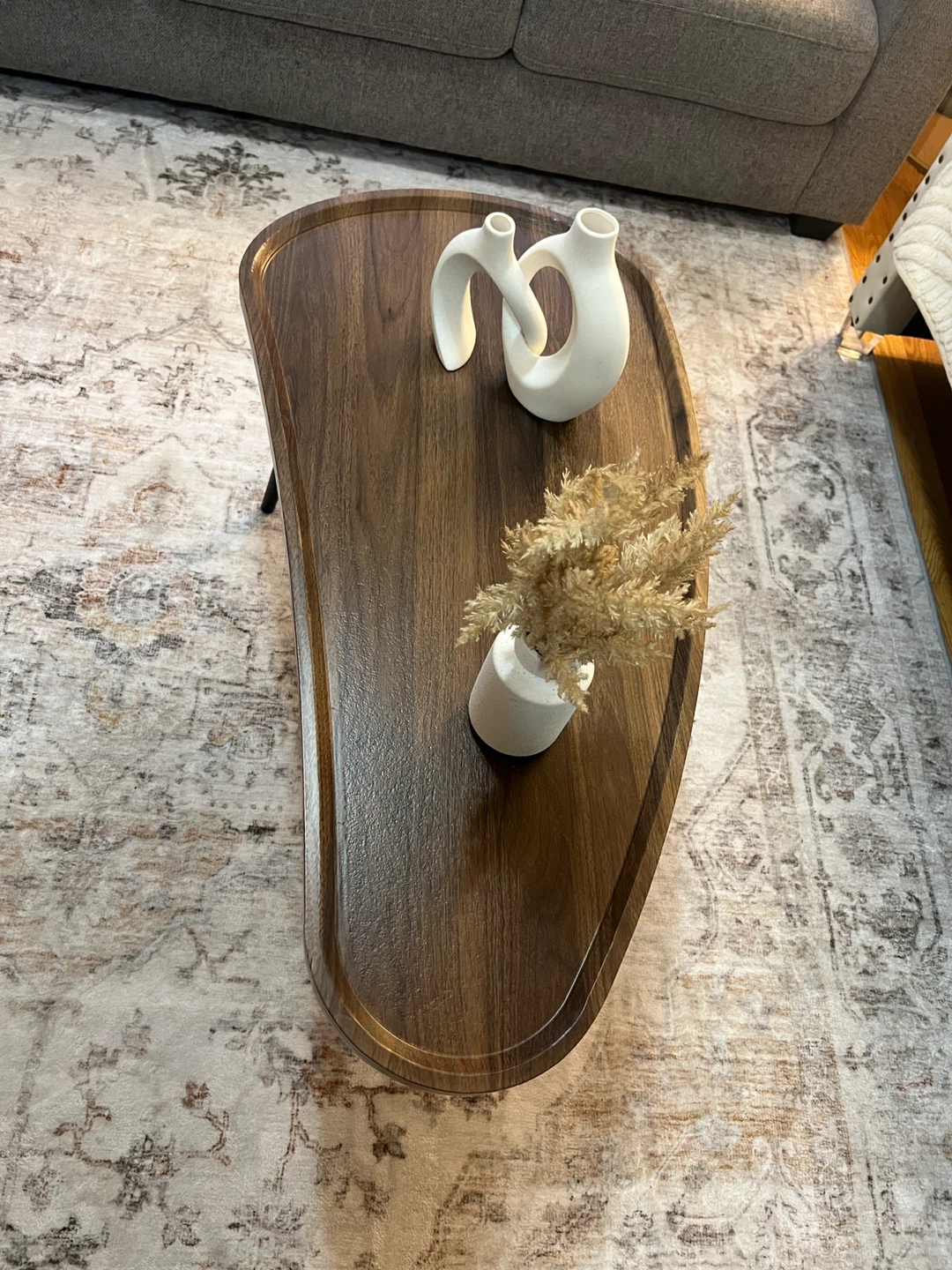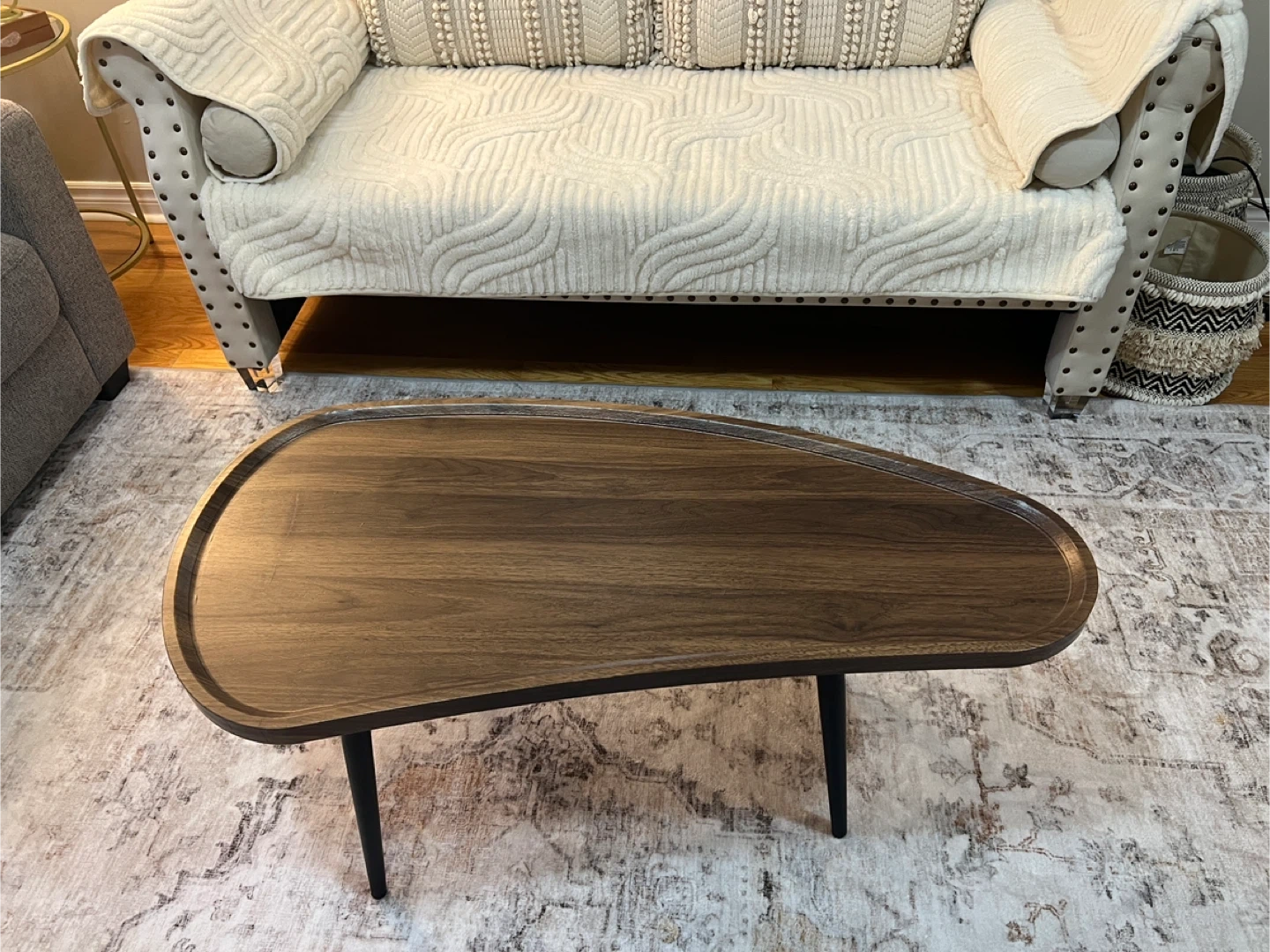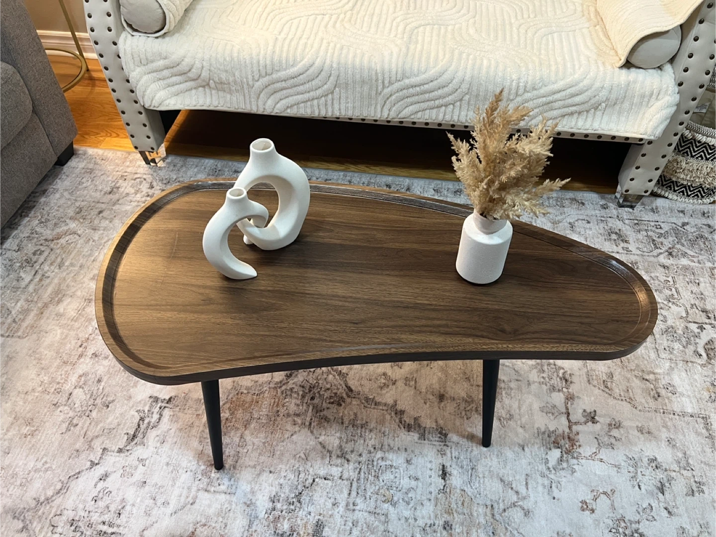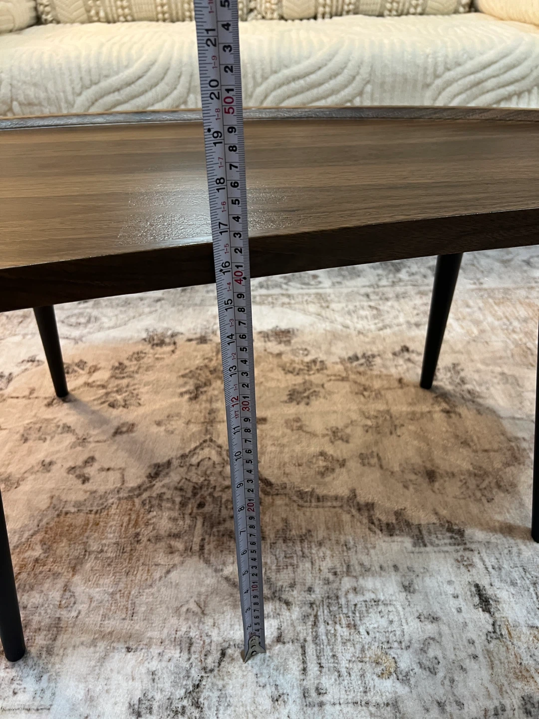 The dark wood finish and sleek black legs give it a contemporary look that would complement any living space.