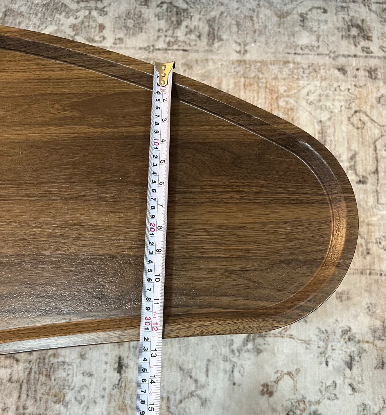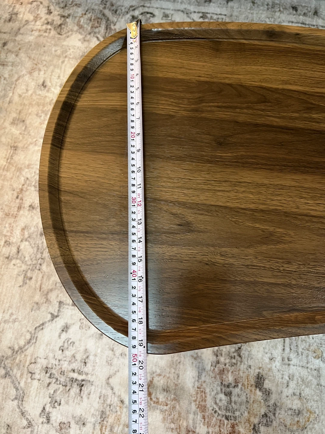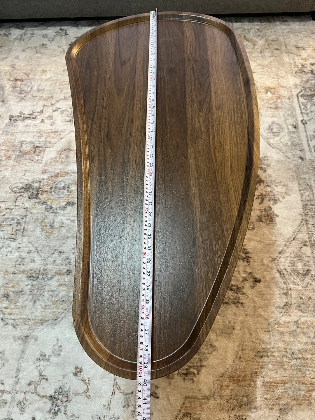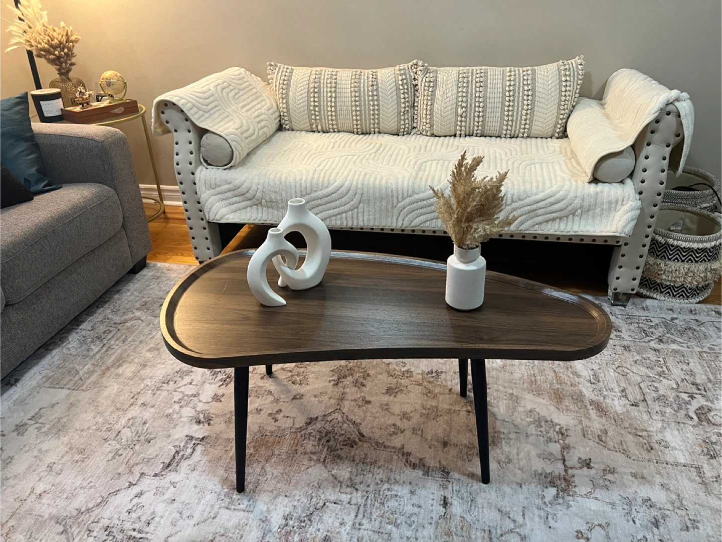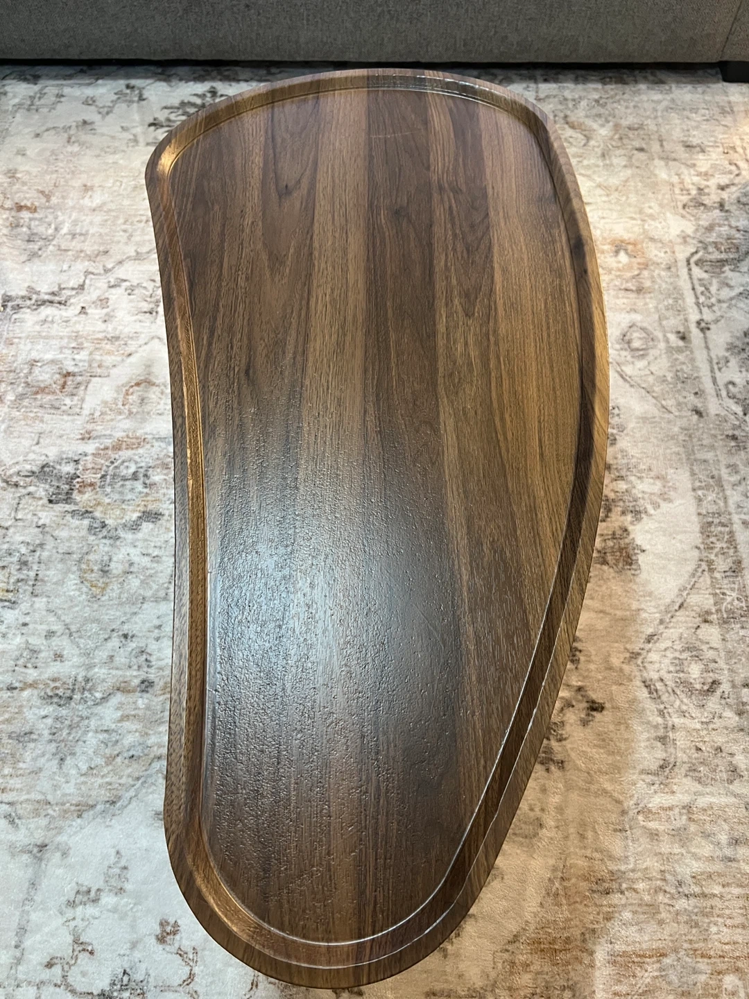 The dark wood finish and sleek black legs give it a contemporary look that would complement any living space.