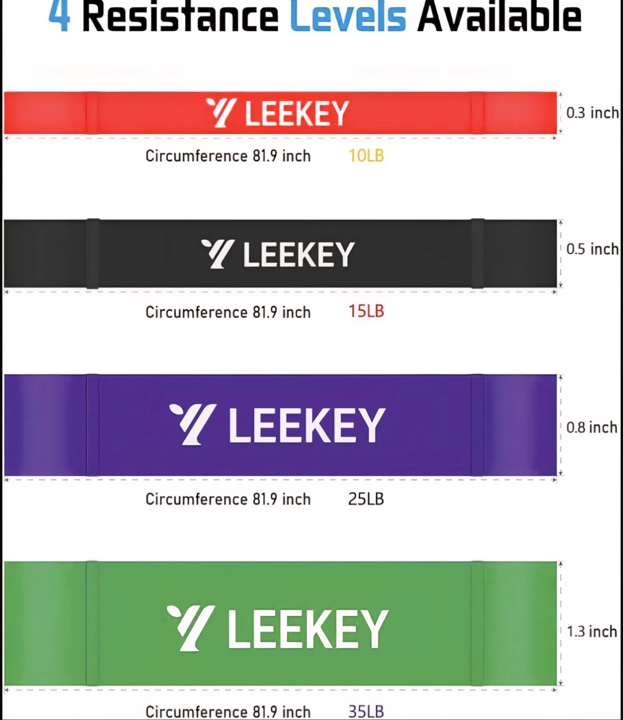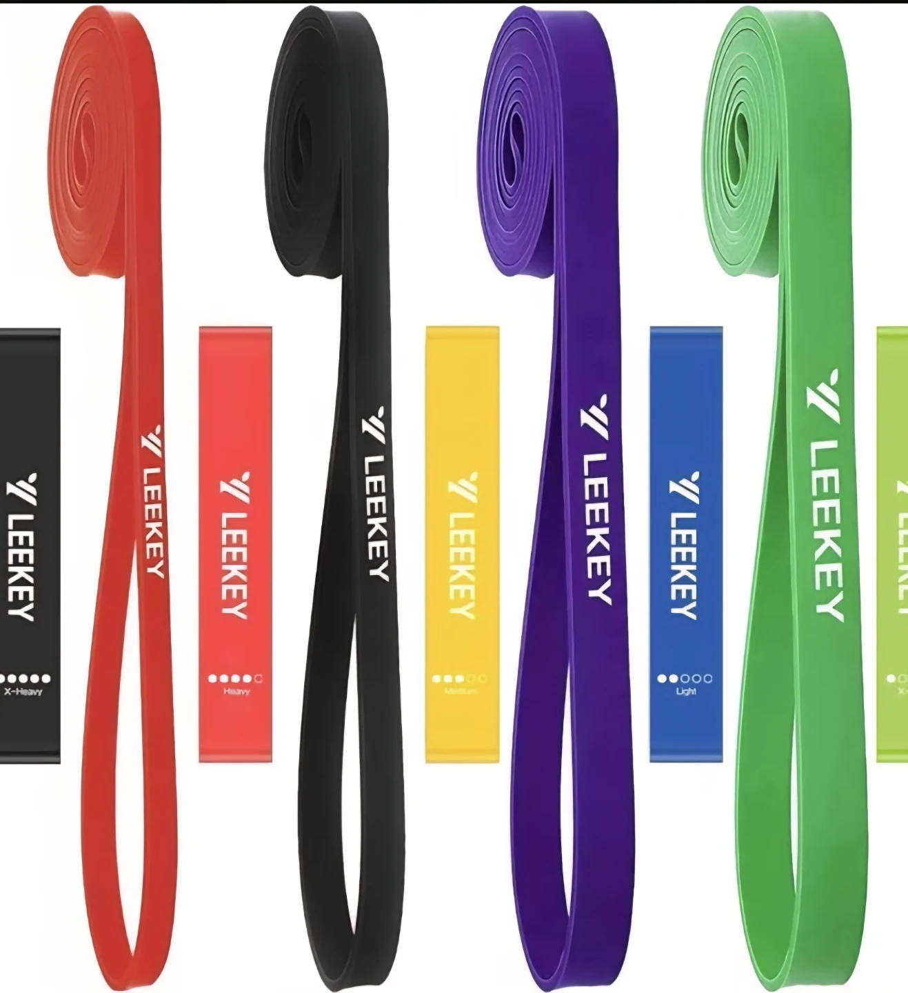 Get your fitness on with this set of Leekey resistance bands! These bands come in a variety of resistance levels, from light to x-heavy, so you can customize your workout. Perfect for home workouts, travel, or adding extra resistance to your gym routine. Includes 4 Pull Up Bands, Travel Carry & Instruction.