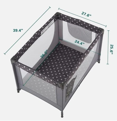 Pamo Babe Portable Enclosed Baby Playpen Crib with Mattress and Carry Bag, Gray