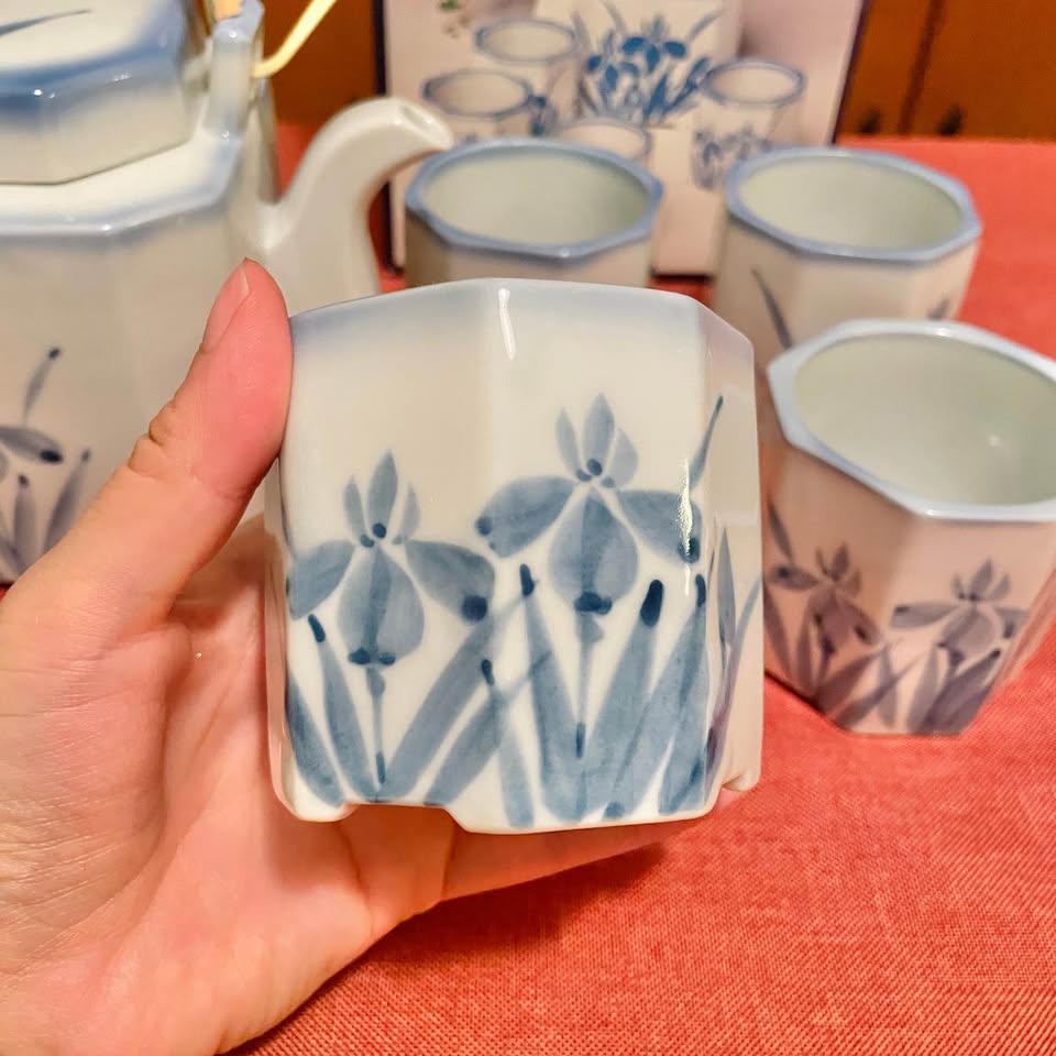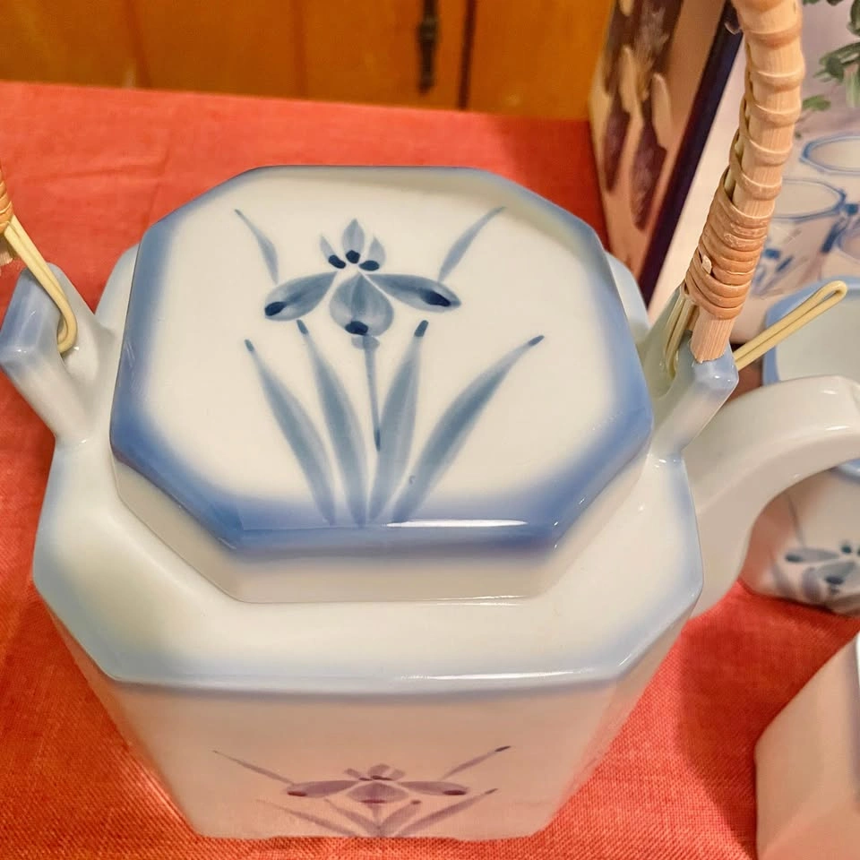 Elegant tea set featuring a beautiful blue and white floral design. Perfect for serving tea with style and sophistication.