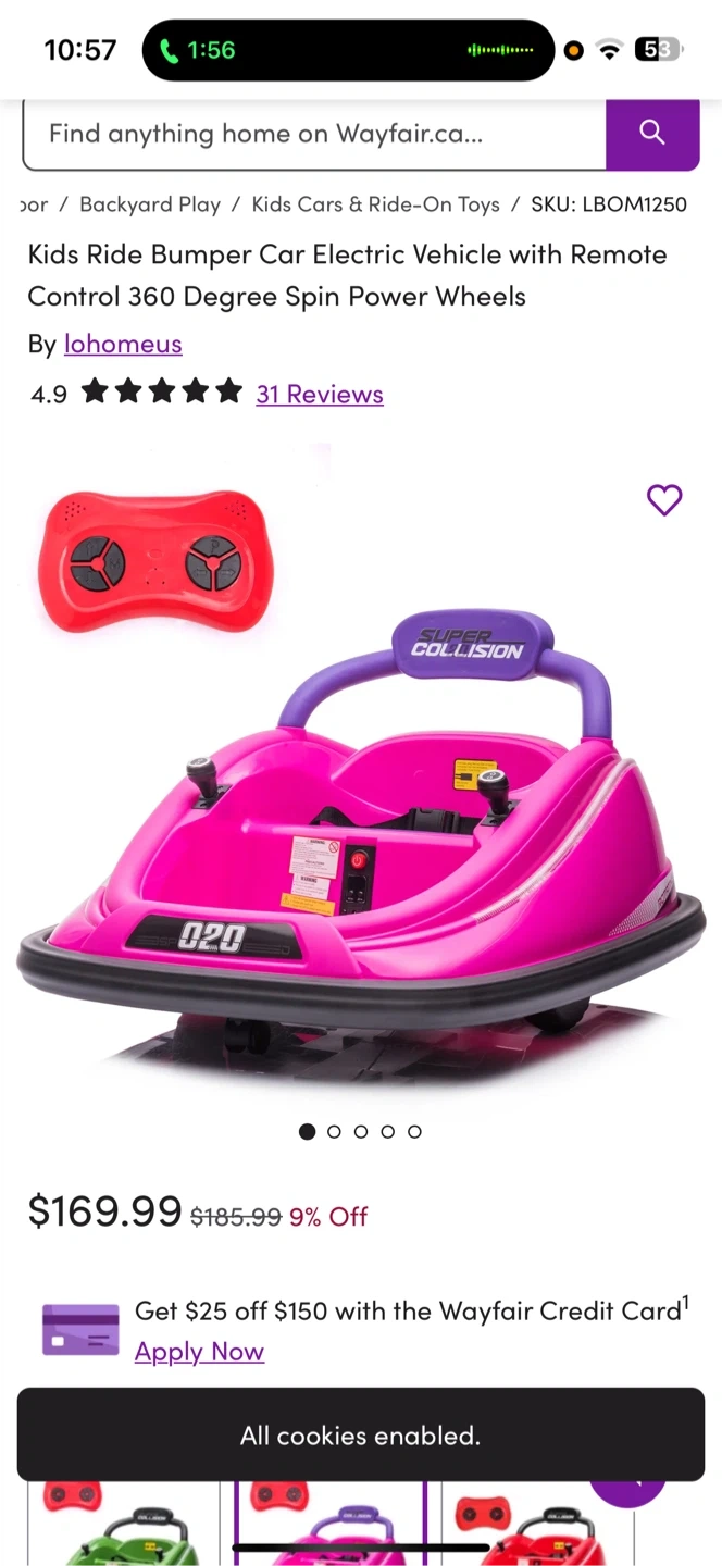 Selling a kids ride bumper car electric vehicle. It has remote control and 360 degree spin power wheels. Originally bought for $169.99