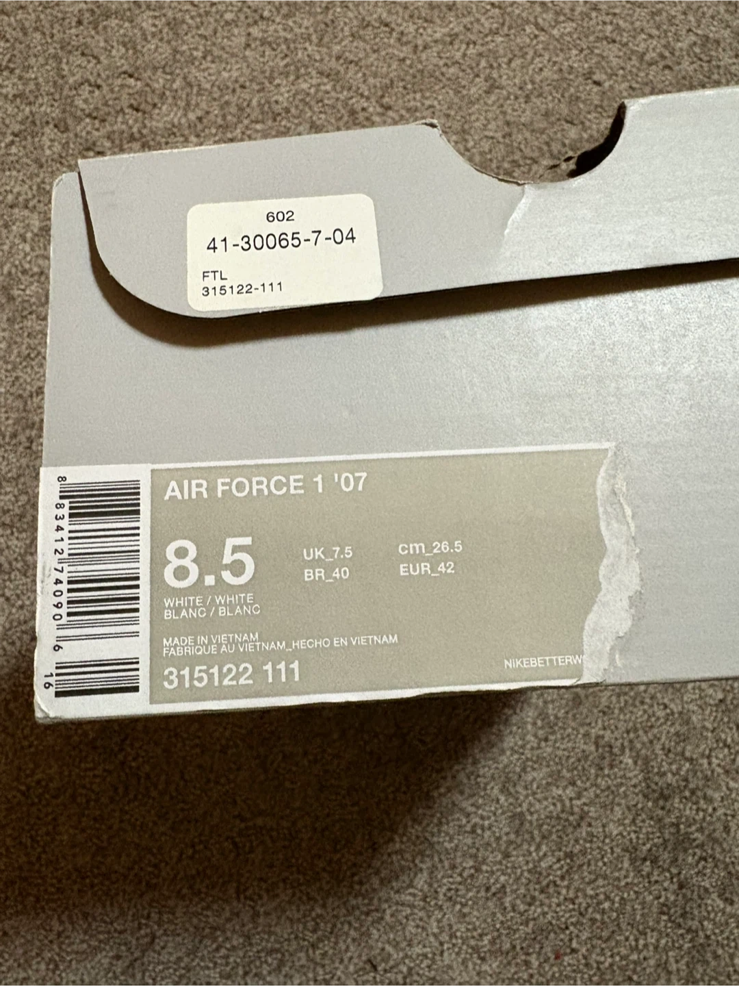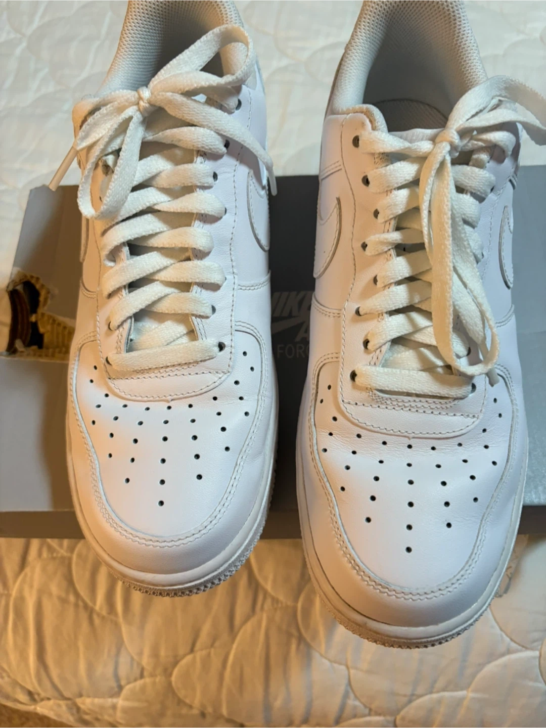 Buy & SellNike Air Force 1Nike Air Force 1$50Selling a pair of classic Nike Air Force 1 sneakers in white! They are Men’s size 8.5. Comes with the original box. Worn 2 times.In excellent condition.EstadoLike newSize8.5BrandNikeWHERE TO MEETBridgeportView MapSELLERverifiedBrunoBridgeport711 review0 chats·0 favorites·182 viewsSEND CHAT TO SELLERHi Bruno! I’m interested in your listing.Hi Bruno! I’m interested in your listing.Get the Karrot app to chatSign In to chat