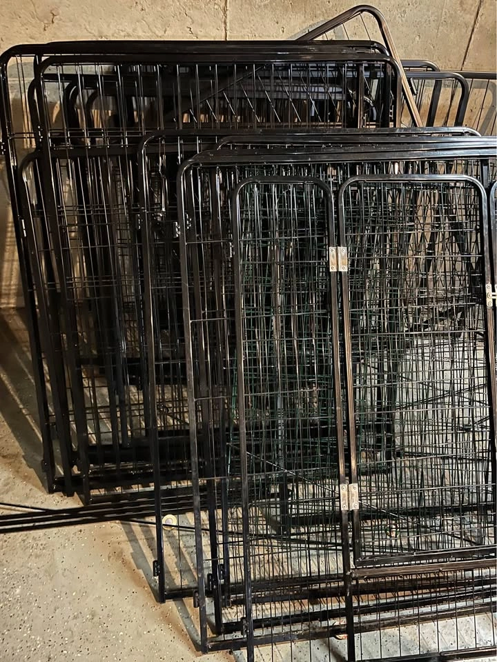 Two types of metal dog or bunny fencing available. One has two gates and 13 panels and the other has 14 panels and two gates. Price is for one set.