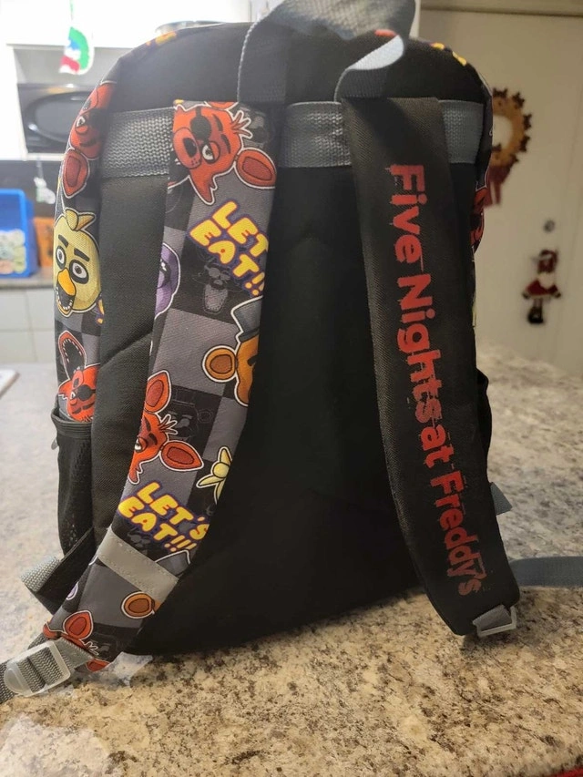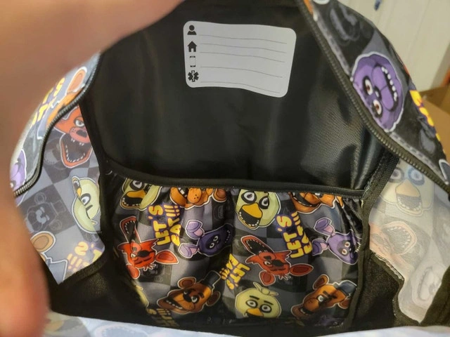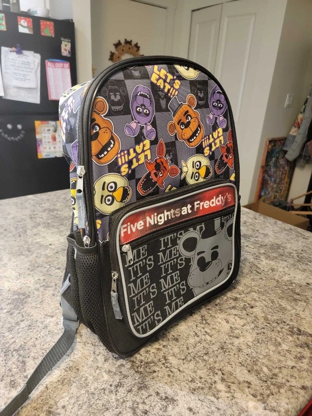 FNAF backpack that was used once and never again. From GameStop. The title card on the front pocket is holographic. Sturdy zippers! Pickup only in sherwood park!