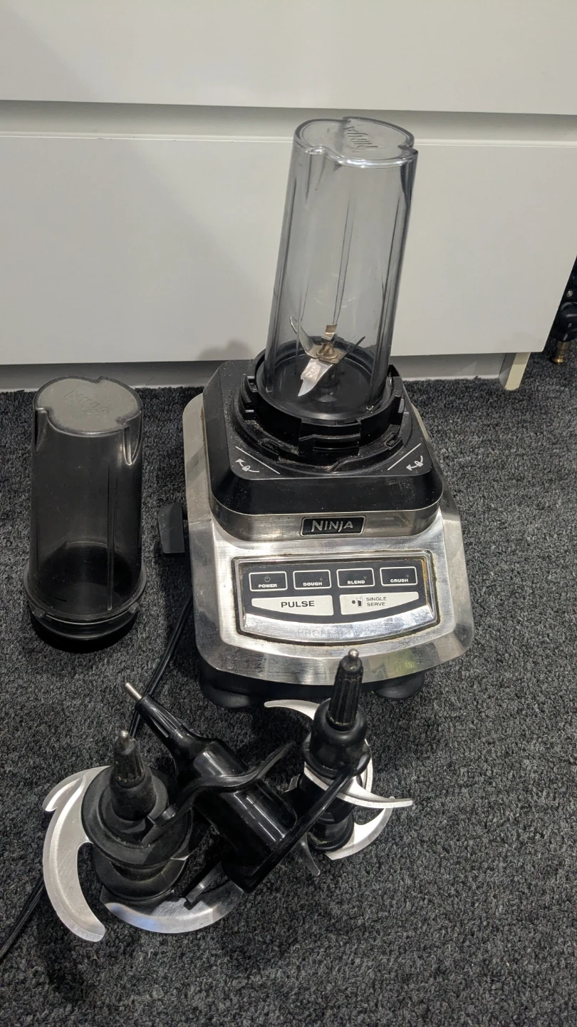 Selling a Ninja blender that's ready to whip up your favorite smoothies and recipes! It comes with multiple blades for different blending needs. Perfect for anyone looking to upgrade their kitchen gadgets!