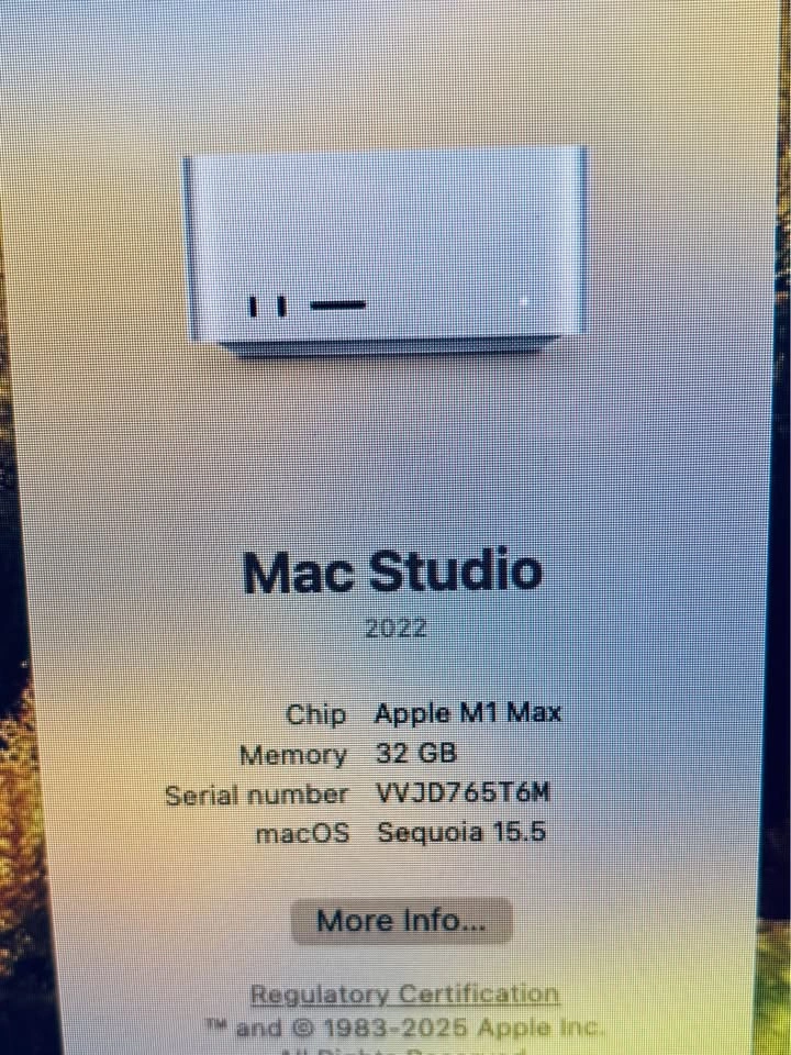 I am selling Apple Mac Studio, 2022. I factory reset it, so it's like new, with box, and all accounts and data is removed. It is fully functional. You can come and test it out, no issues. It is in excellent condition. Monitor is not included