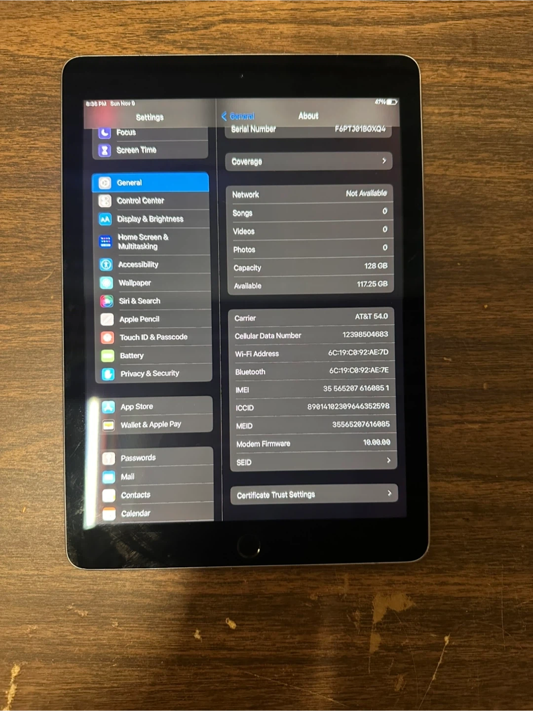 Serial Number: F6PTJ01BGXQ4