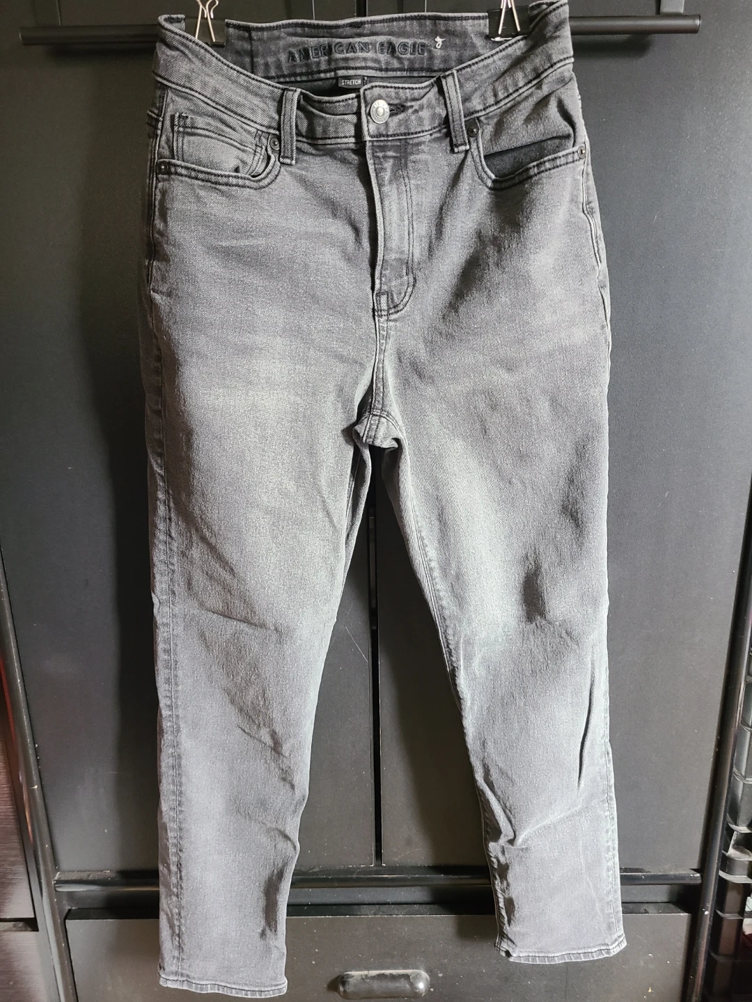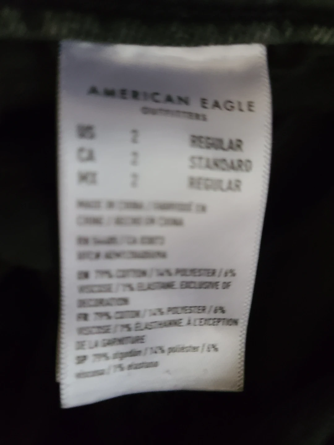 Selling a pair of American Eagle Outfitters jeans in great condition! They are a size 2 and made of 79% cotton, 14% polyester, 6% viscose, and 1% elastane🥕