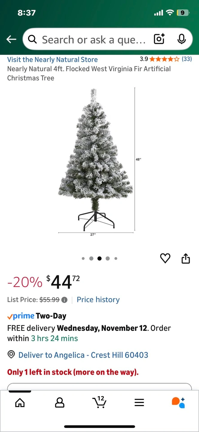 DIMENSIONS & SIZE: 27in. W x 27in. D x 48in. H ; Stand Dimensions: 2 In. x 13 In. x 13. Christmas trees are designed with hinged branches that can be easily reshaped to achieve the perfect fullness and symmetry, giving you the flexibility to create a tree that suits your personal style.