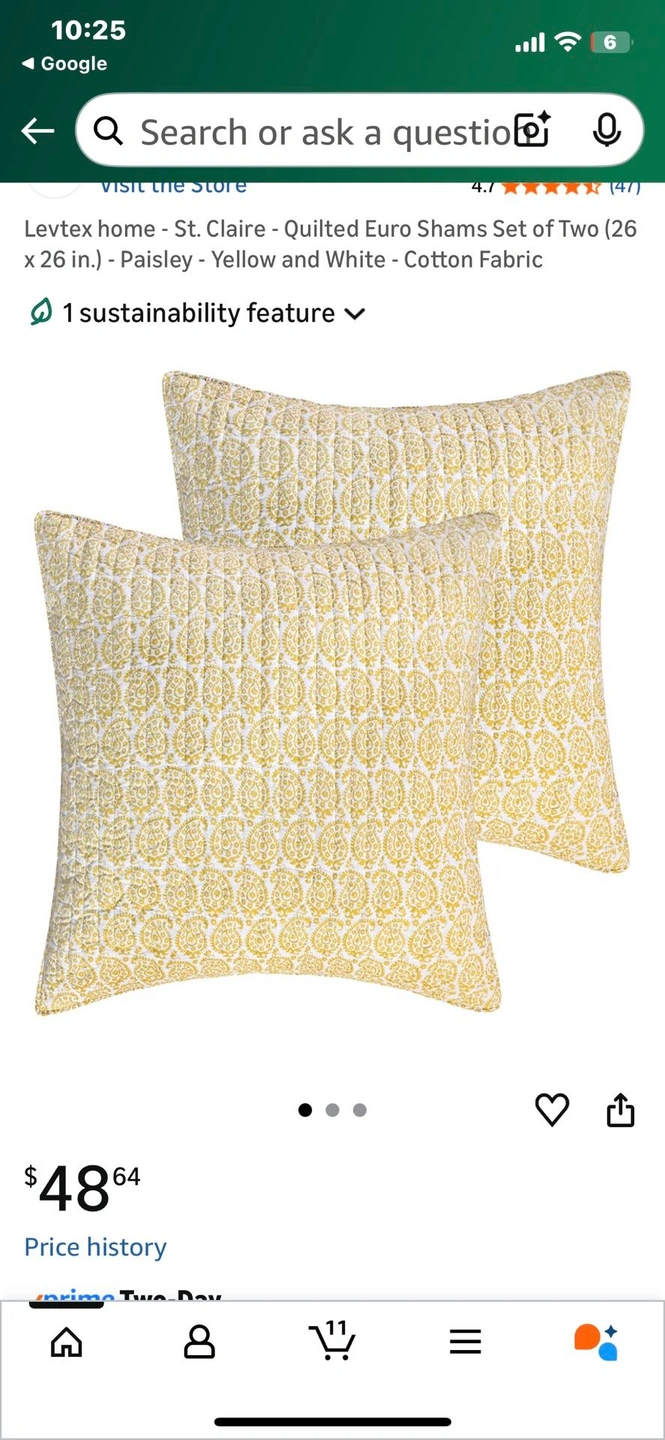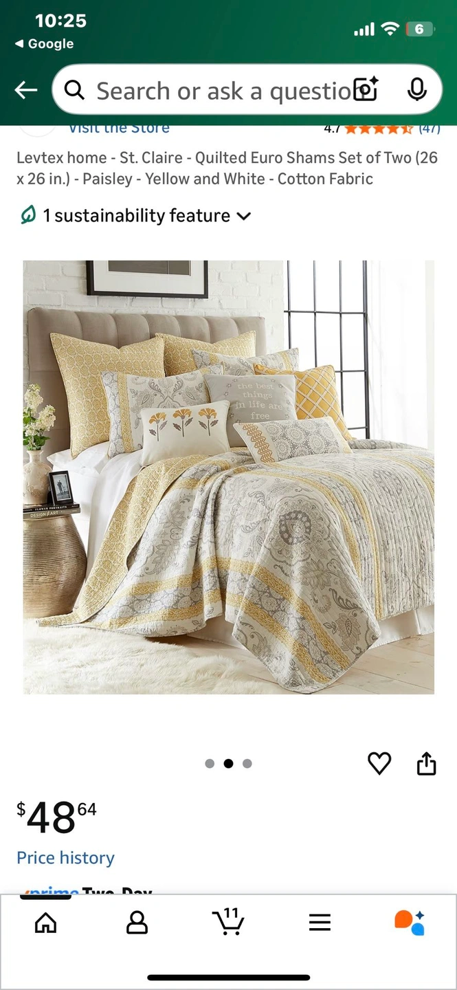 Levtex home - St. Claire - Quilted Euro Shams Set of Two (26 x 26 in.) - Paisley - Yellow and White - Cotton Fabric