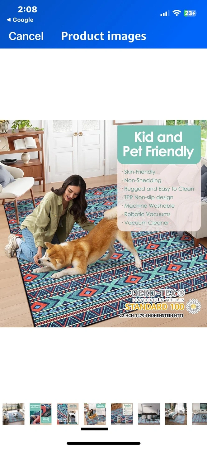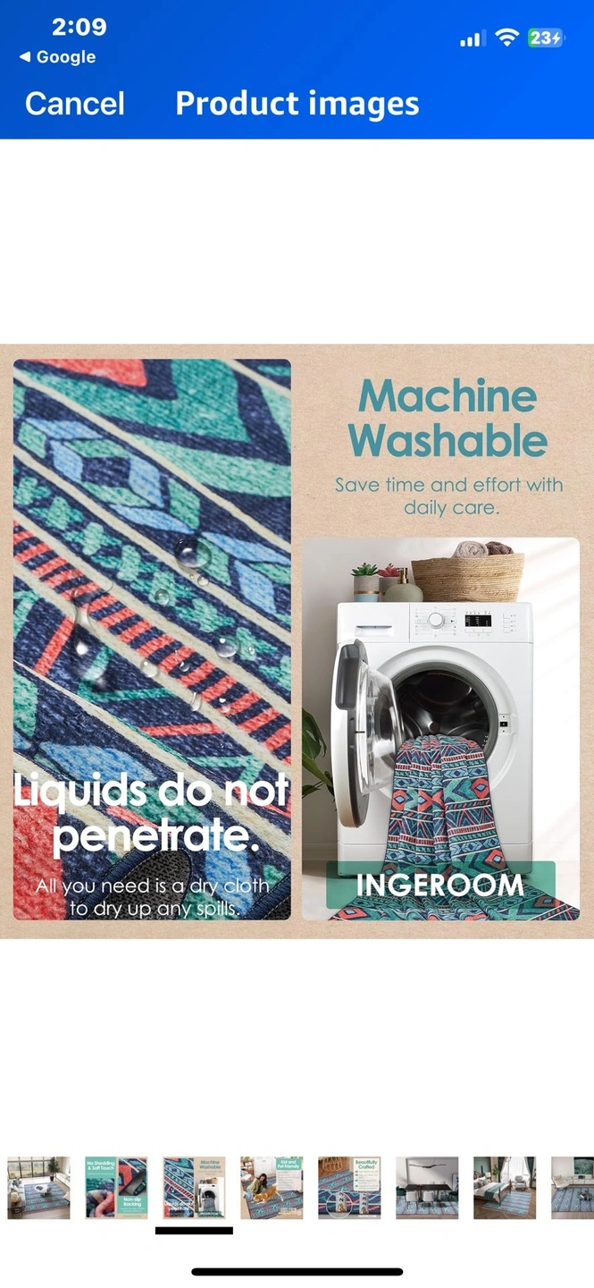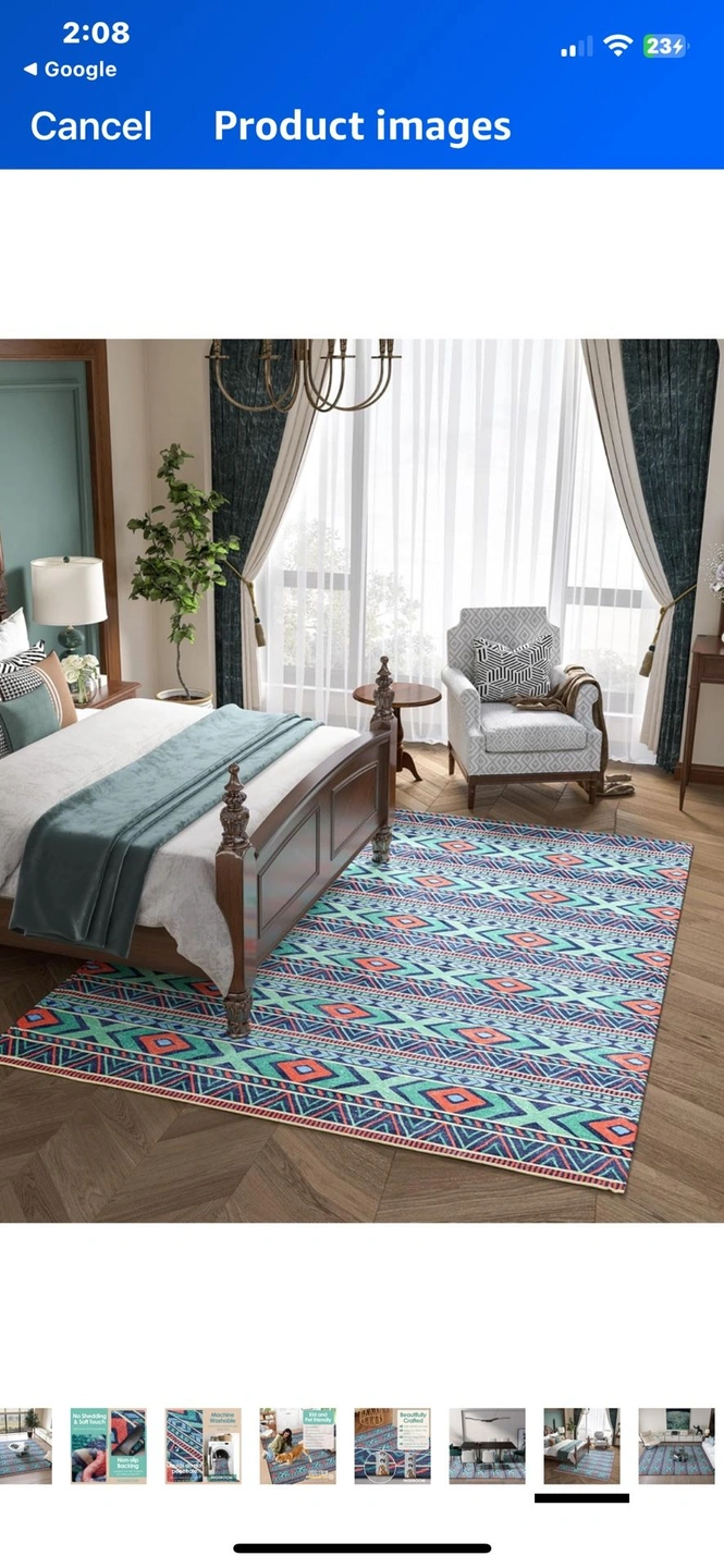 New opened packaging washable 8 x 10 area rug. The last three photos are photos I found online