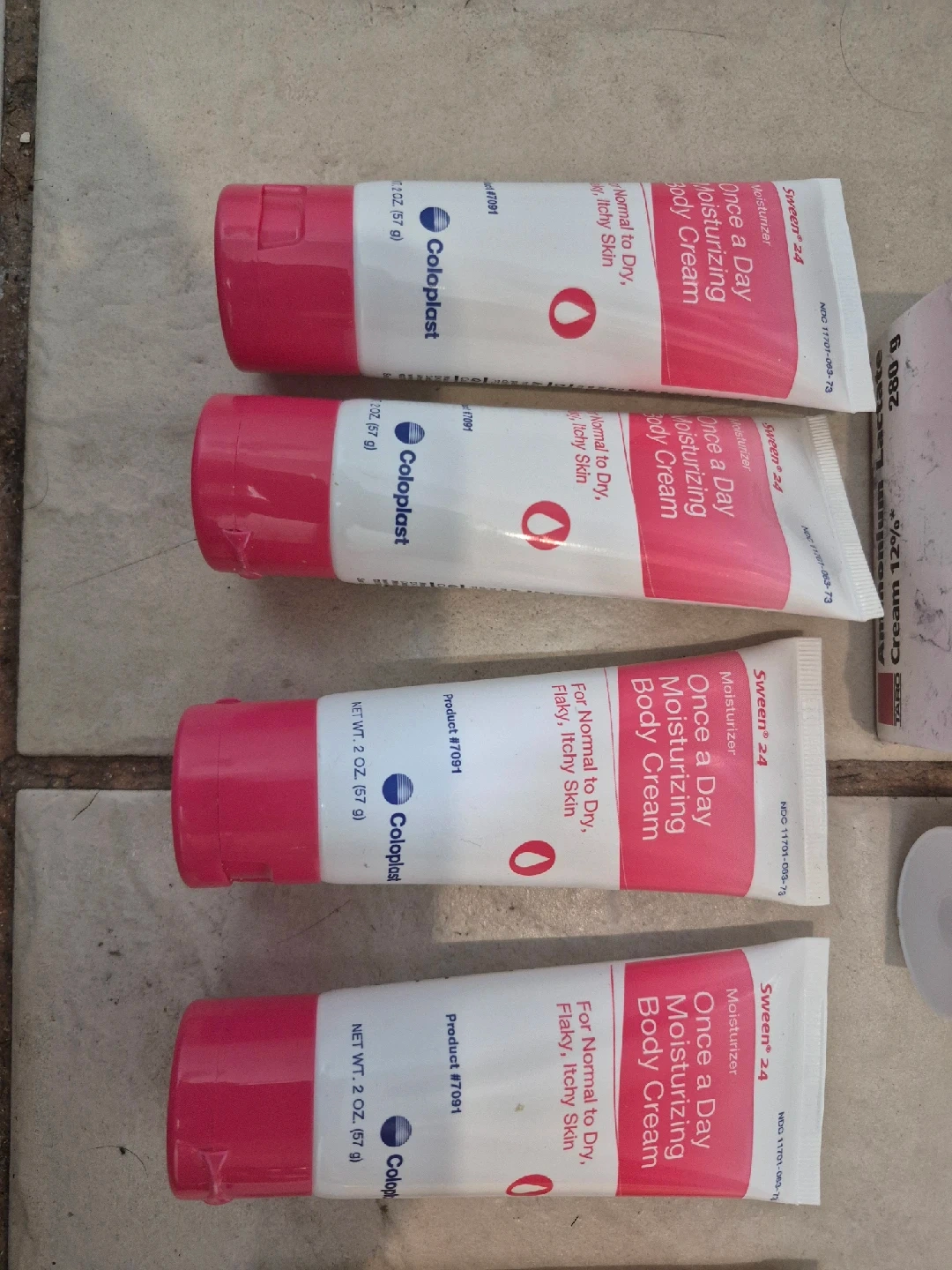 I have some tubes of Coloplast Sween 24 Once a Day Moisturizing Body Cream for sale. It's great for normal to dry, flaky, and itchy skin. Each tube contains 2 oz (57 g) of cream