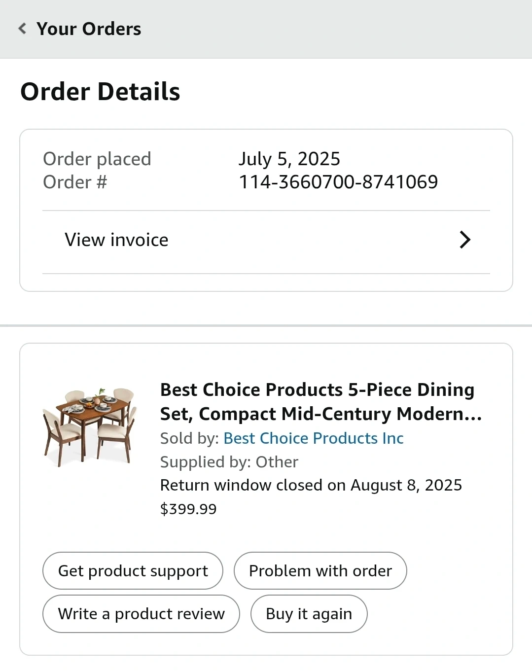 It does have a few scratches and dings from the movers moving it (we hired from Thumbtack in Virginia and they did not think to wrap it in furniture pads π€¦π»ββοΈ) but it's all fixable with wood markers! You can even get wood filler and sandpaper from Amazon for $10 if it bothers you enough