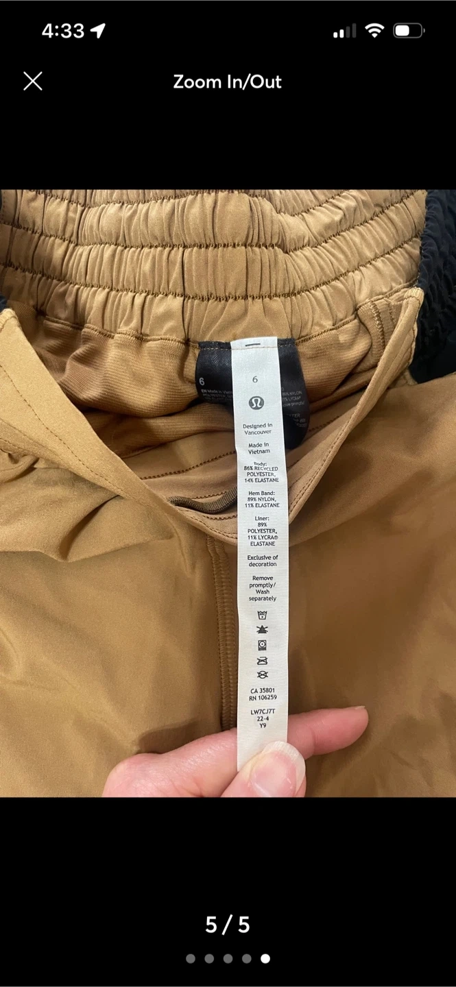 4” inseam, built in liner, stash pocket, zippered seam pocket, reflective, mesh panels. Color lock sold out series. See pictures for fabric info. Black and gold.