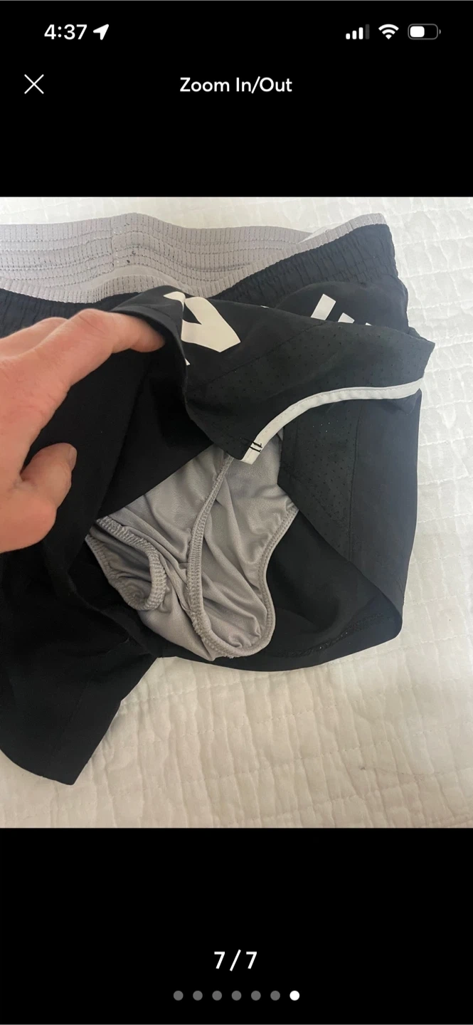 Shorts in excellent condition, 2.5-3” inseam. Lined with underwear. Low rise. These are shorty shorts!