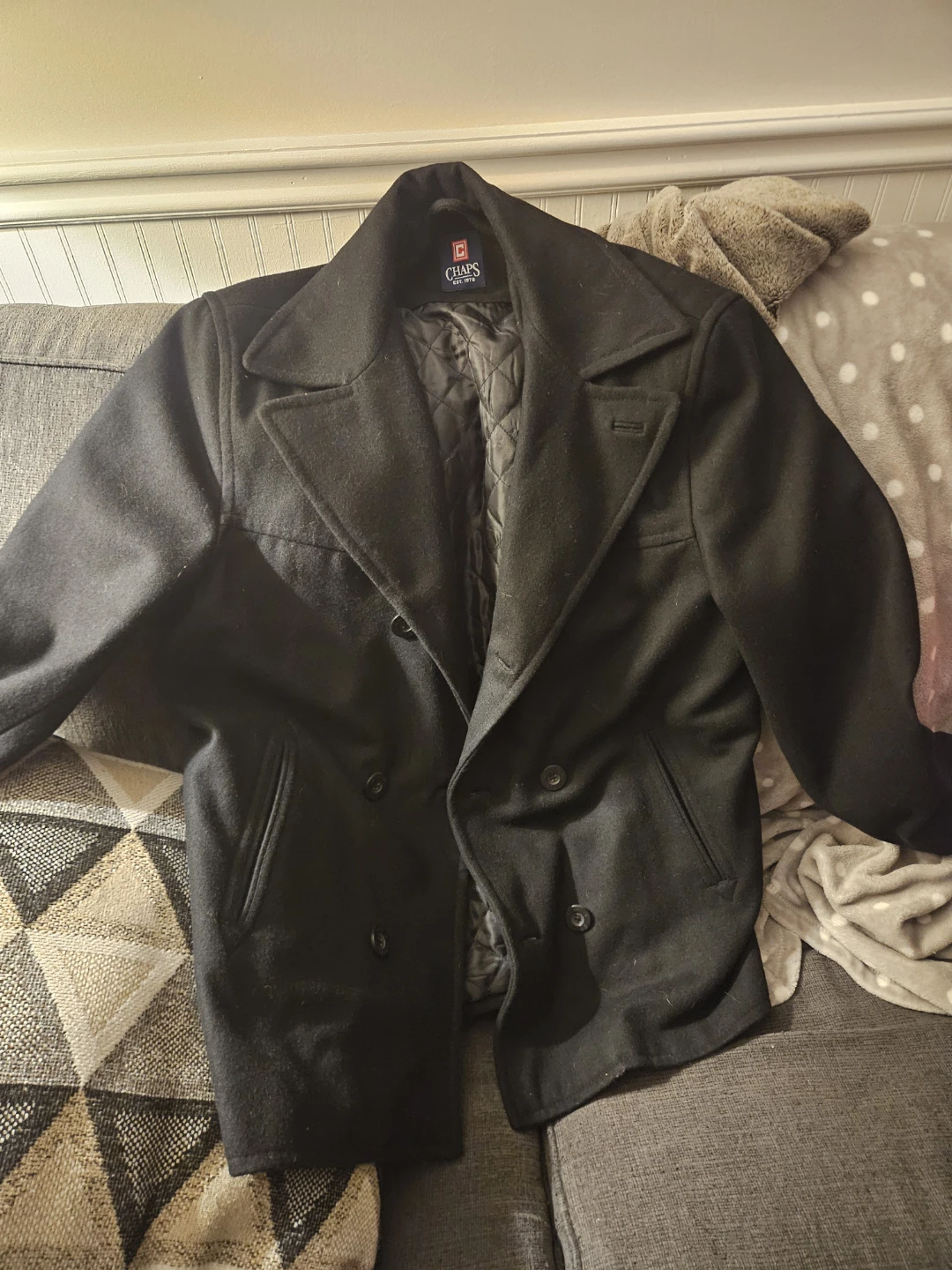 1 / 21 / 2Buy & SellChaps Black Pea Coat - Size LChaps Black Pea Coat - Size L$40Selling a classic black pea coat from Chaps! It's a size L and in great condition. Perfect for staying warm and stylish during the colder months.SizelargeBrandChapsWHERE TO MEETCheck LocationView MapSELLERverifiedMikeDarlington1257 reviews0 chats·0 favorites·4 viewsSEND CHAT TO SELLERHi Mike! I’m interested in your listing.Hi Mike! I’m interested in your listing.Get the Karrot app to chatSign In to chat