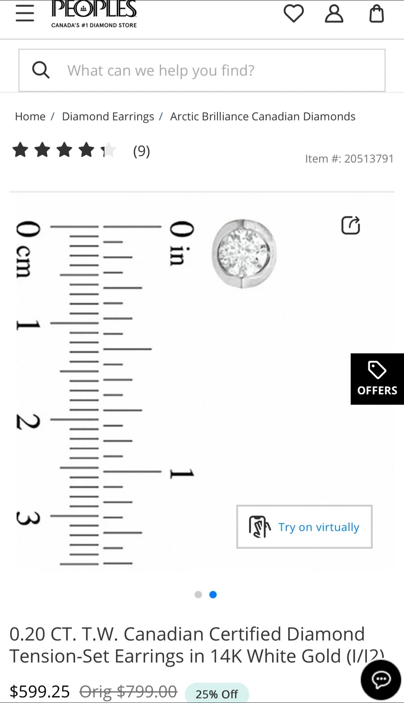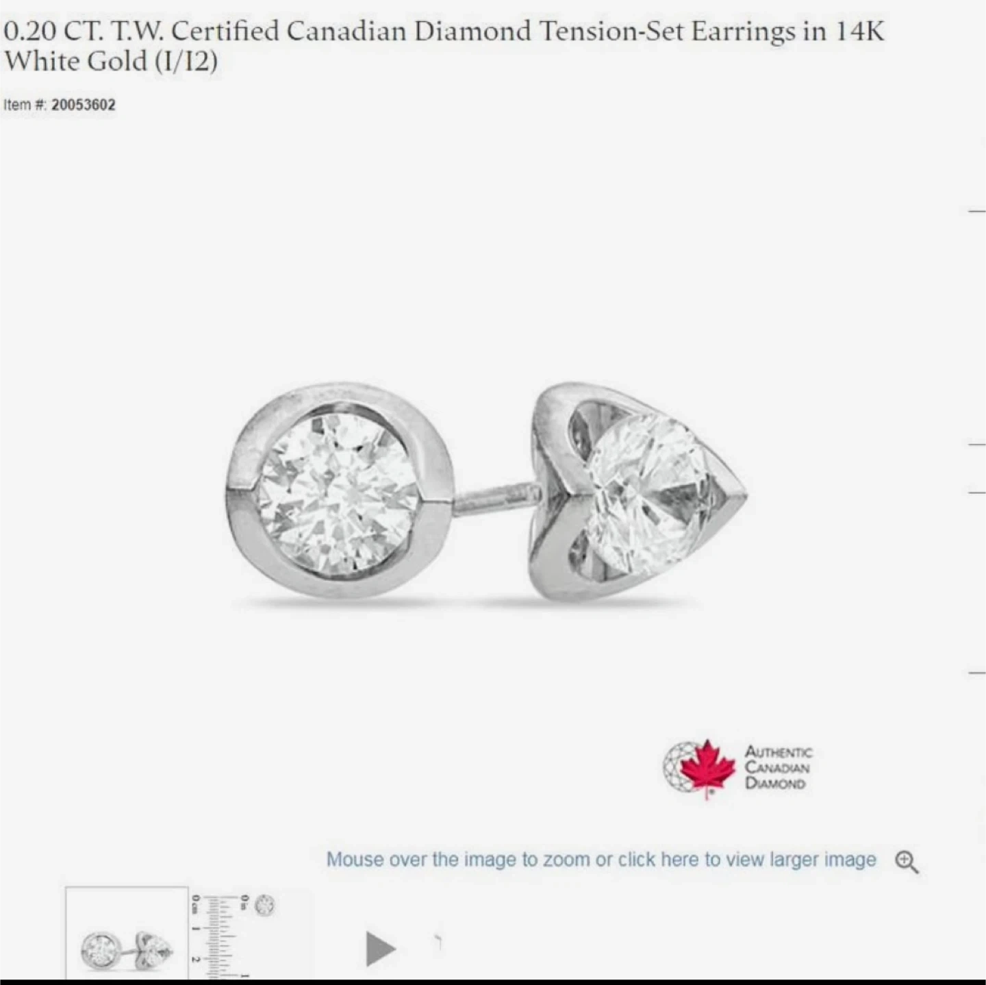 These are Peoples 0.20 CT. T.W. Canadian Certified Diamond Tension-Set Earrings in 14K White Gold. Originally bought for $799!