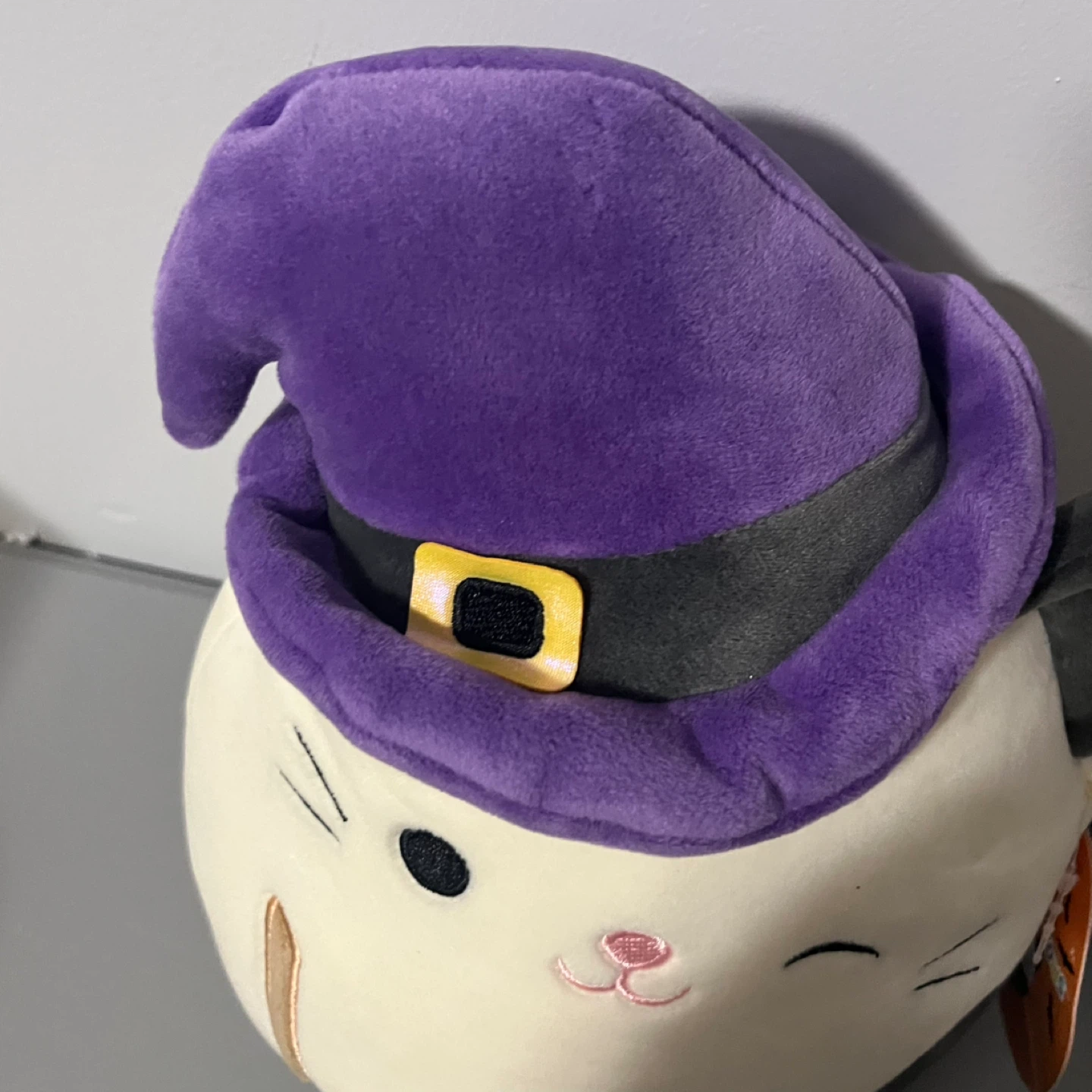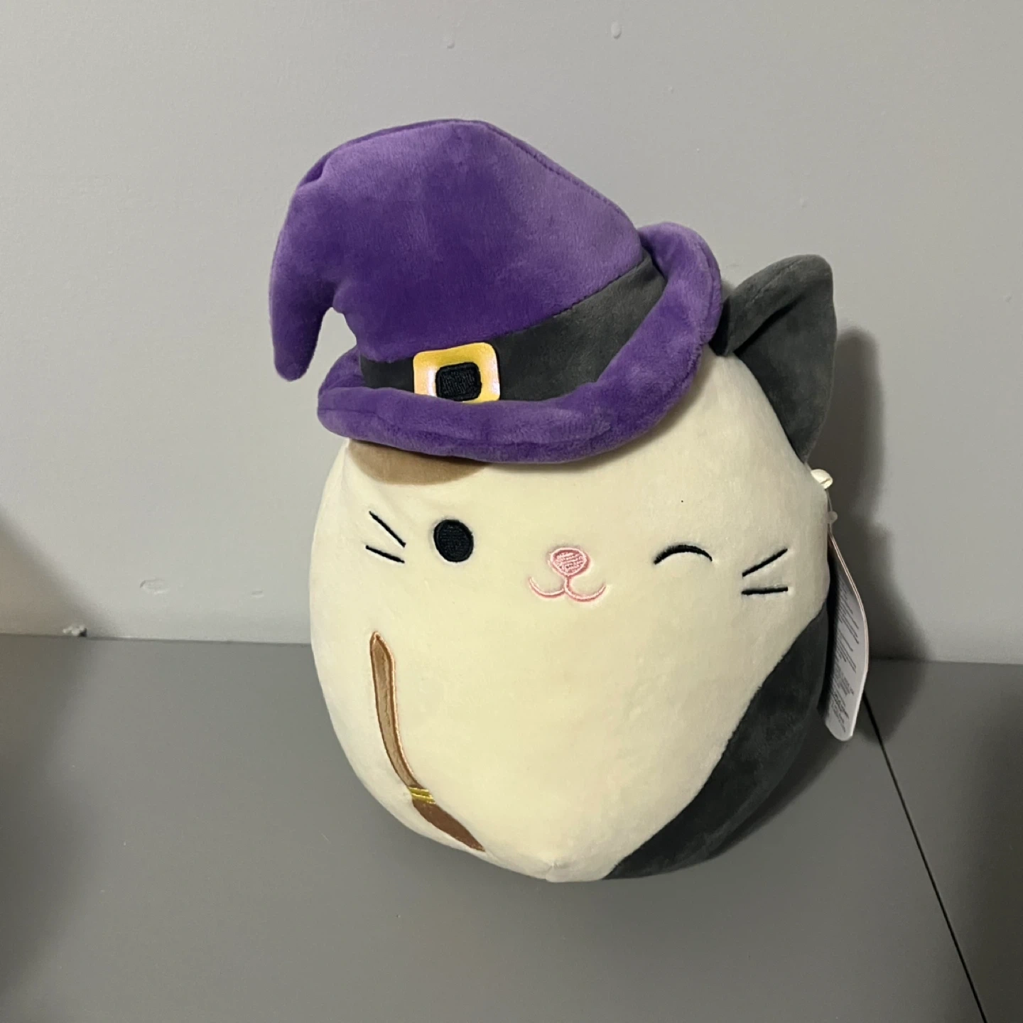 Selling a super cute Squishmallows plush! It's a cat dressed as a witch with a purple hat and a little broom. Perfect for Halloween or any time you want a cuddly friend