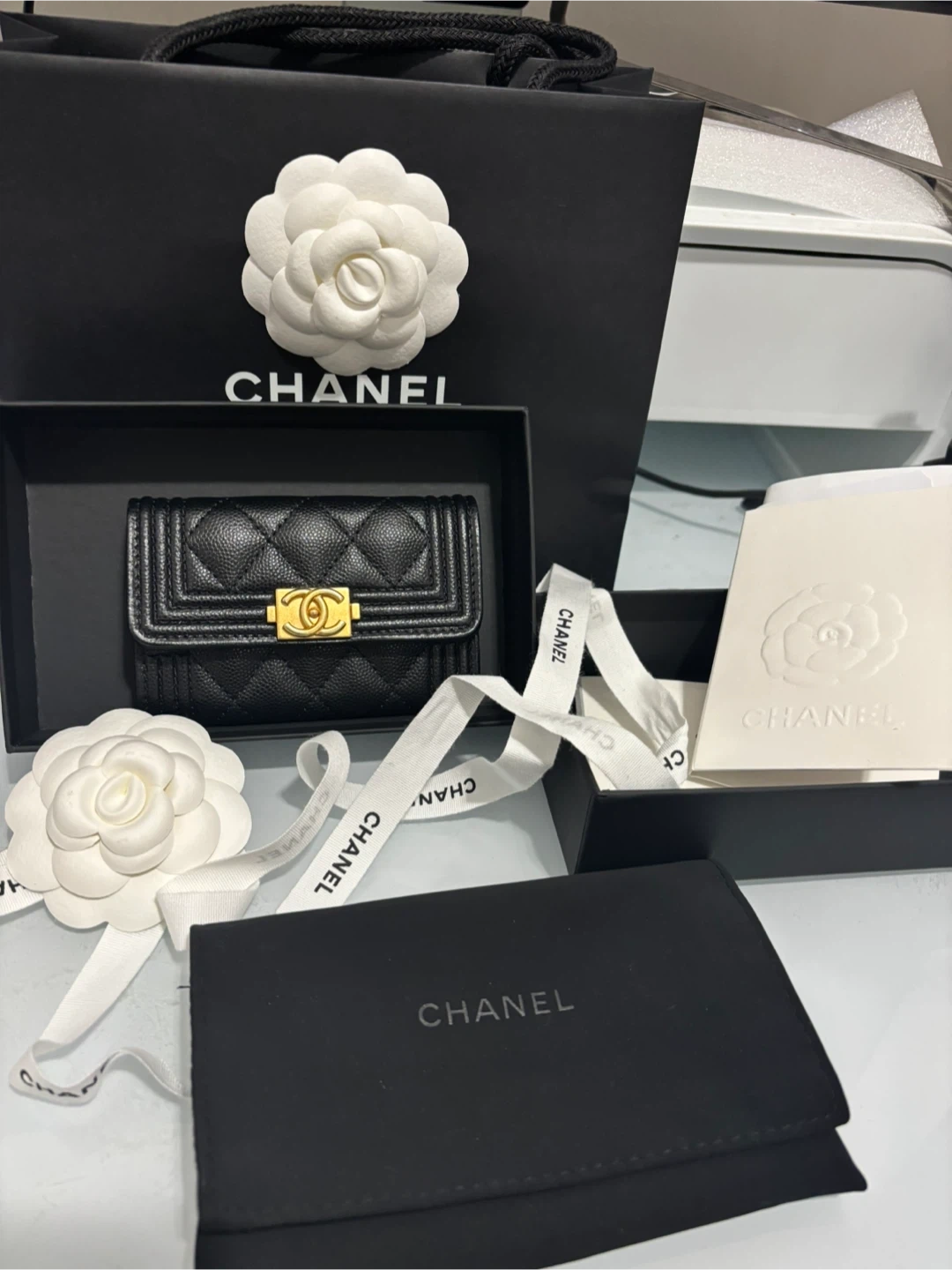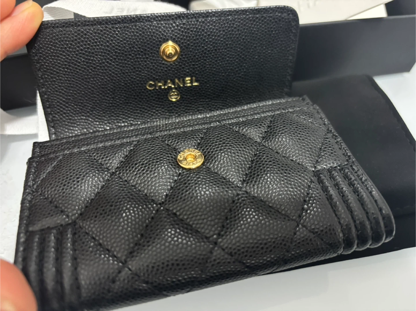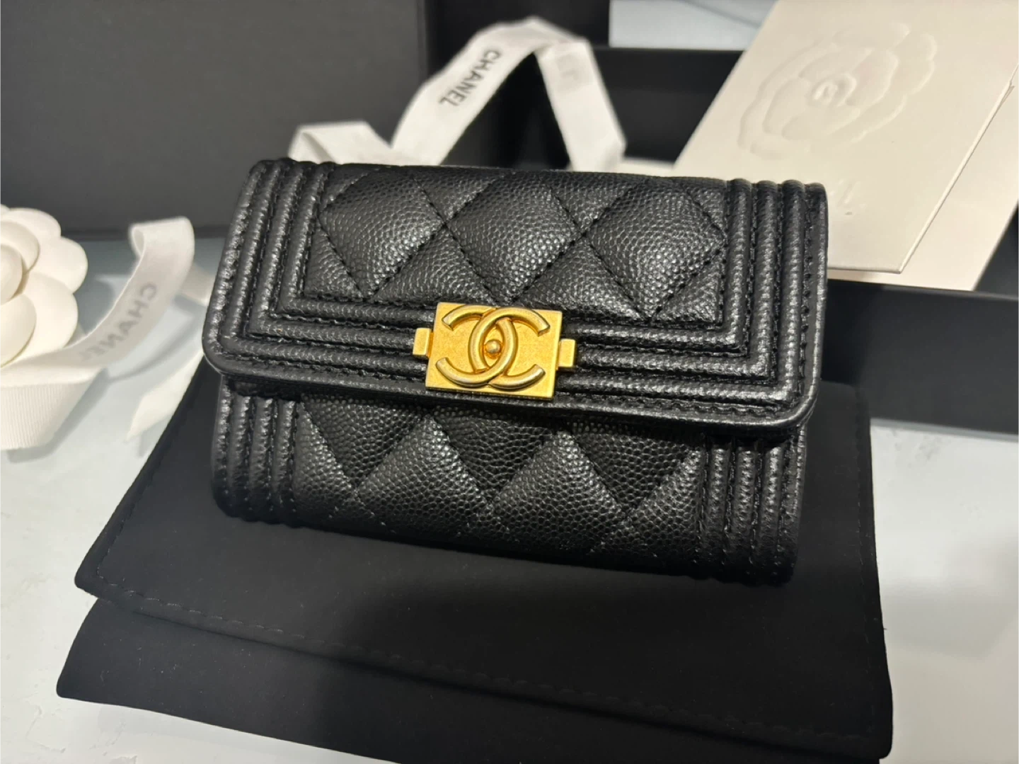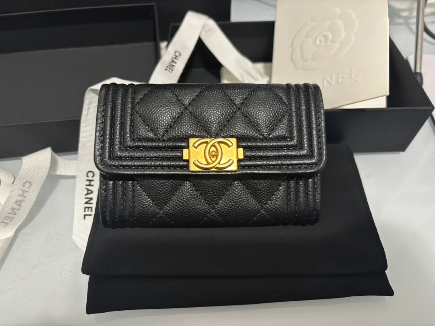 This Chanel Boy card holder is a hard-to-find piece and rarely available in stores. I’ve only used it twice, so it’s still in excellent condition.