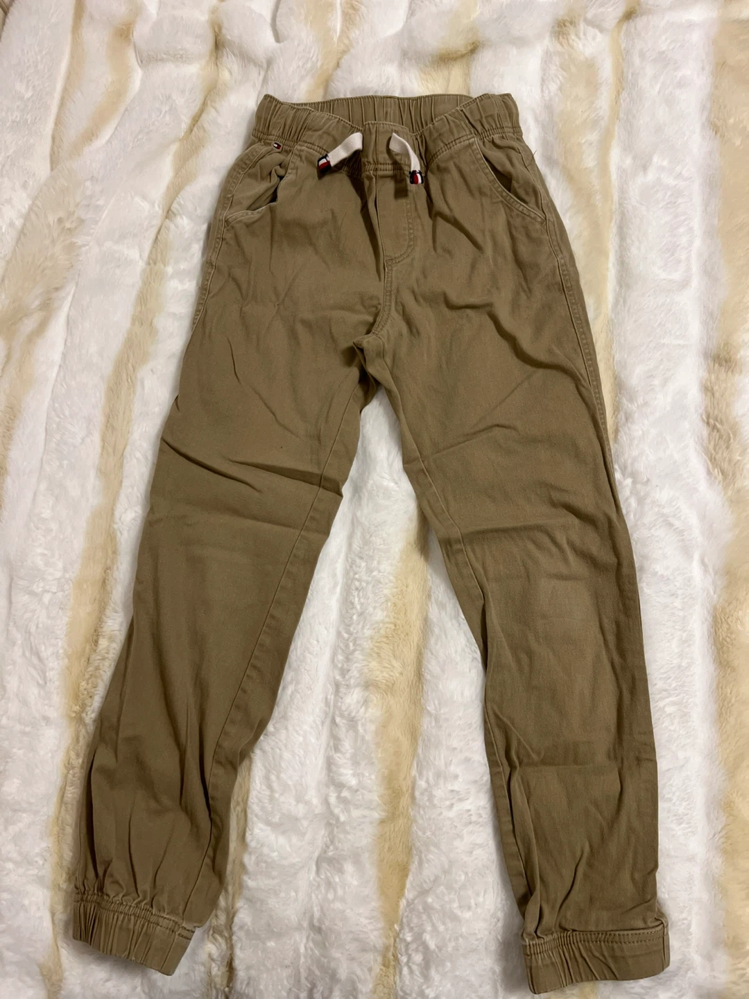 Selling a pair of Tommy Hilfiger pants in size 14. The pants are a khaki color and have an elastic waistband with a drawstring. Great for everyday wear!