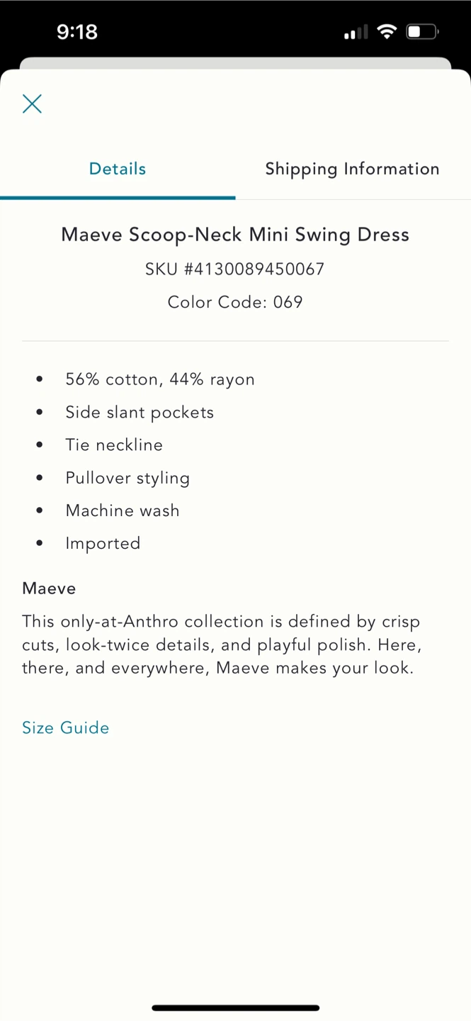 BNWT Anthropologie Mare Mare Mini Neck Swing Dress XS
