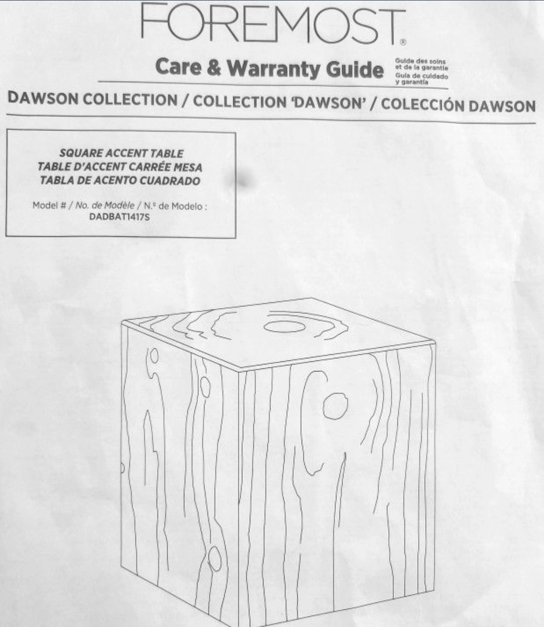 Selling a Foremost Dawson Collection square accent table! It's in great condition and ready to add a rustic touch to your space. It has a unique wood grain design that looks great in any room!