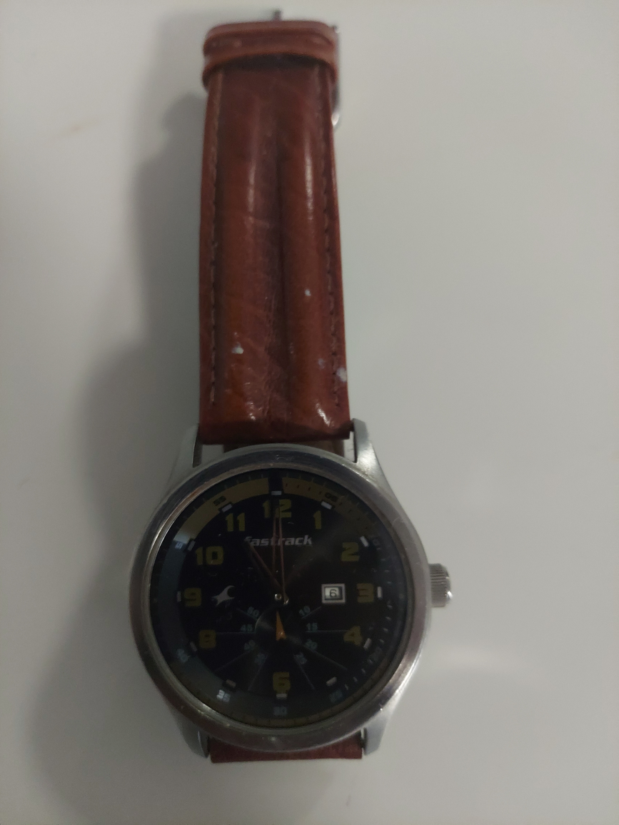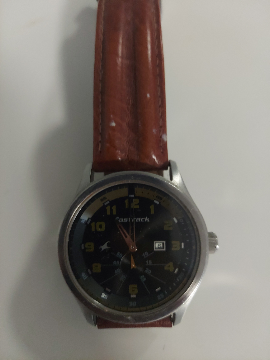 Selling a Fastrack watch with a brown leather strap. It has a classic design and is in good condition. The watch face is easy to read, and the leather strap adds a touch of style. Perfect for everyday wear!