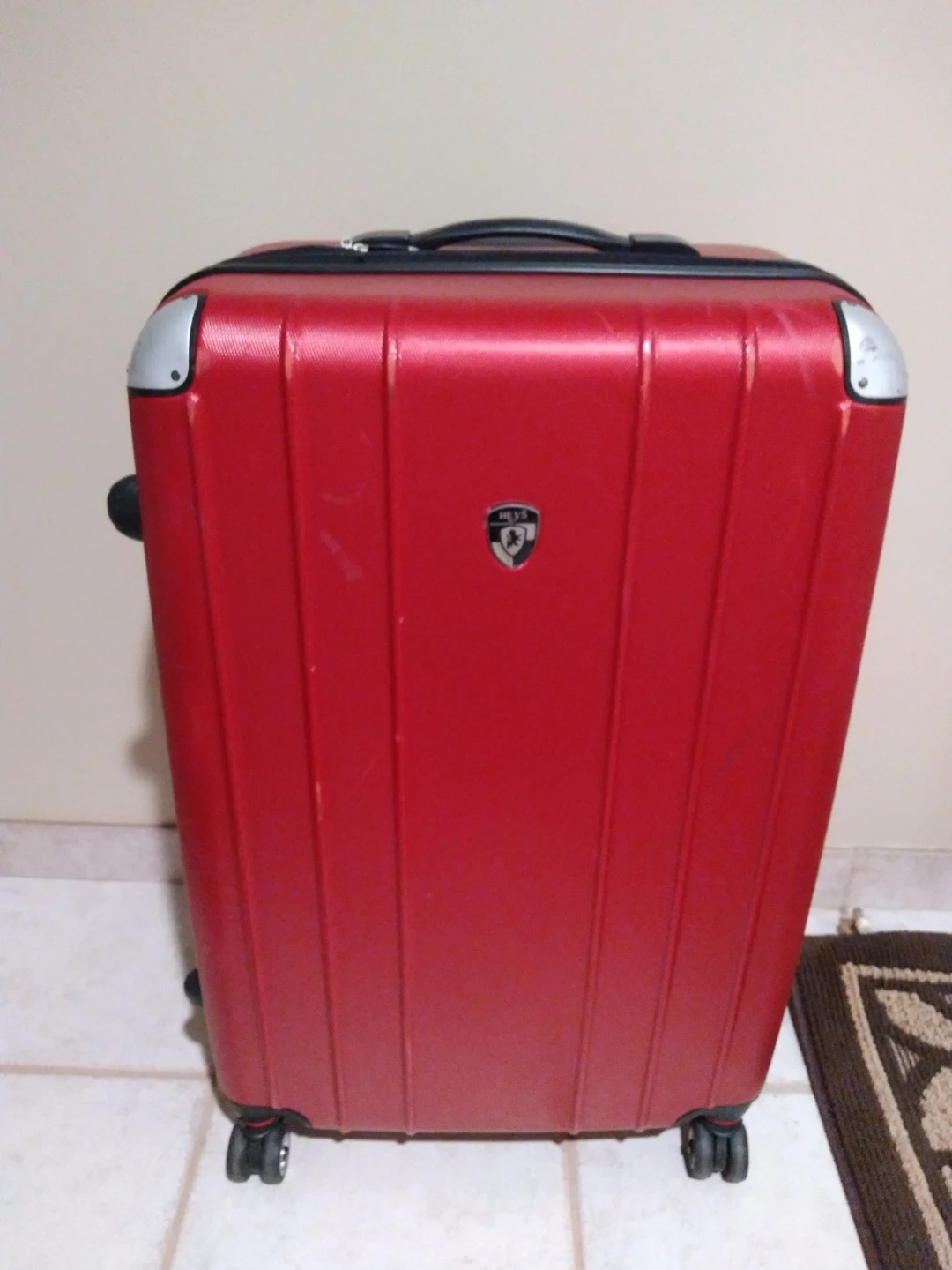 Selling a red Heys hardside spinner suitcase. It's in good condition and ready for your next trip!