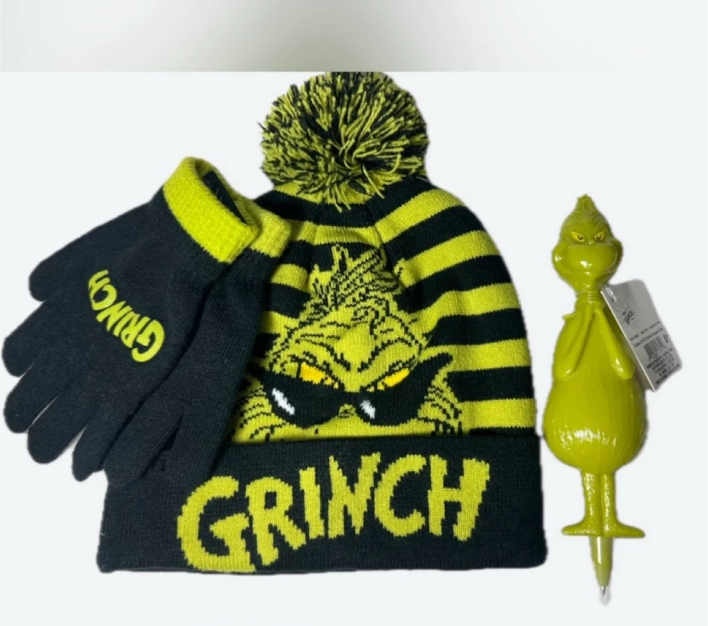 NEW The Grinch Hat+ Gloves Set (child size) + FREE Grinch pen