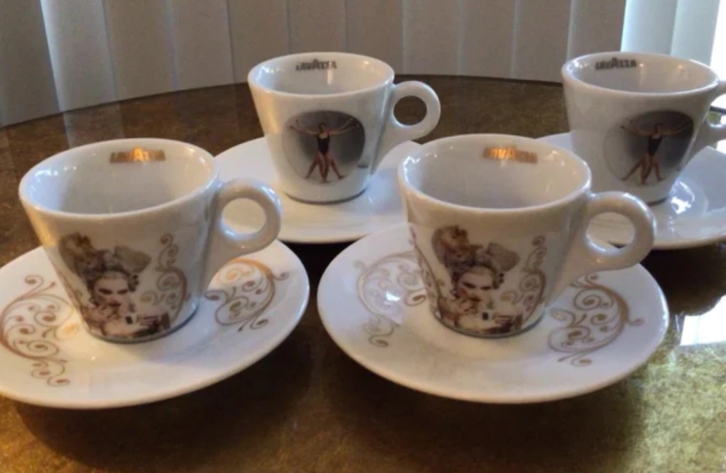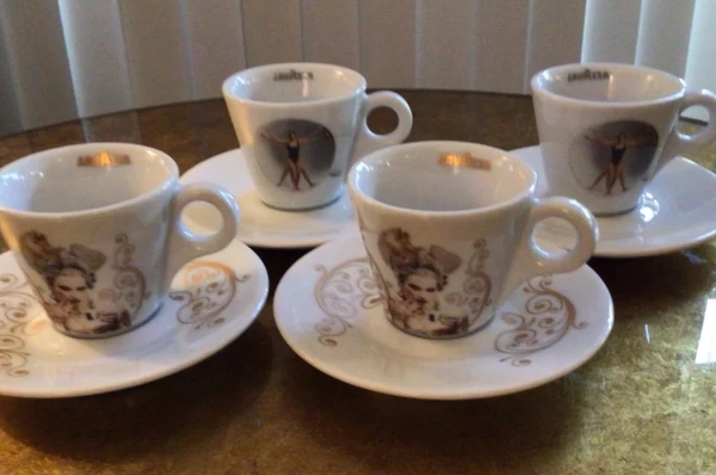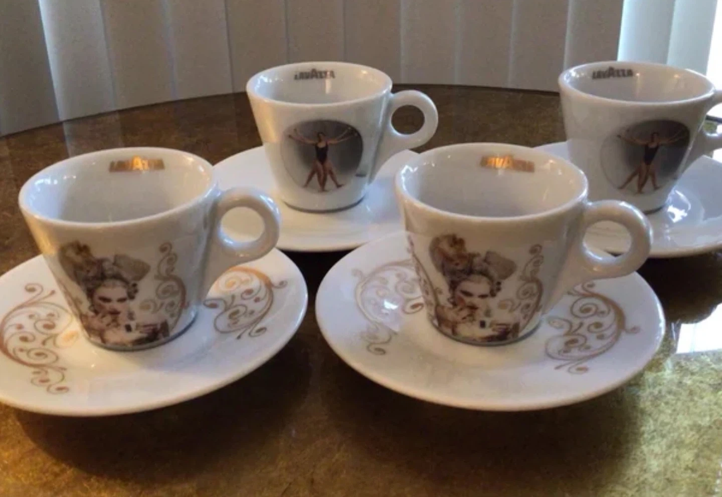 4 Sets Of Lavazza Vintage Collectible Demitasse Espresso Cups & Saucers. 2 Sets of The Italian Espresso Experience D’Ancap Tazzine; and 2 Sets of 2008 Finlay Mackay Calendar “The Most Majestic Espresso Experience” Demitasse Cups & Saucers. 4 sets of rare, exquisite Lavazza.