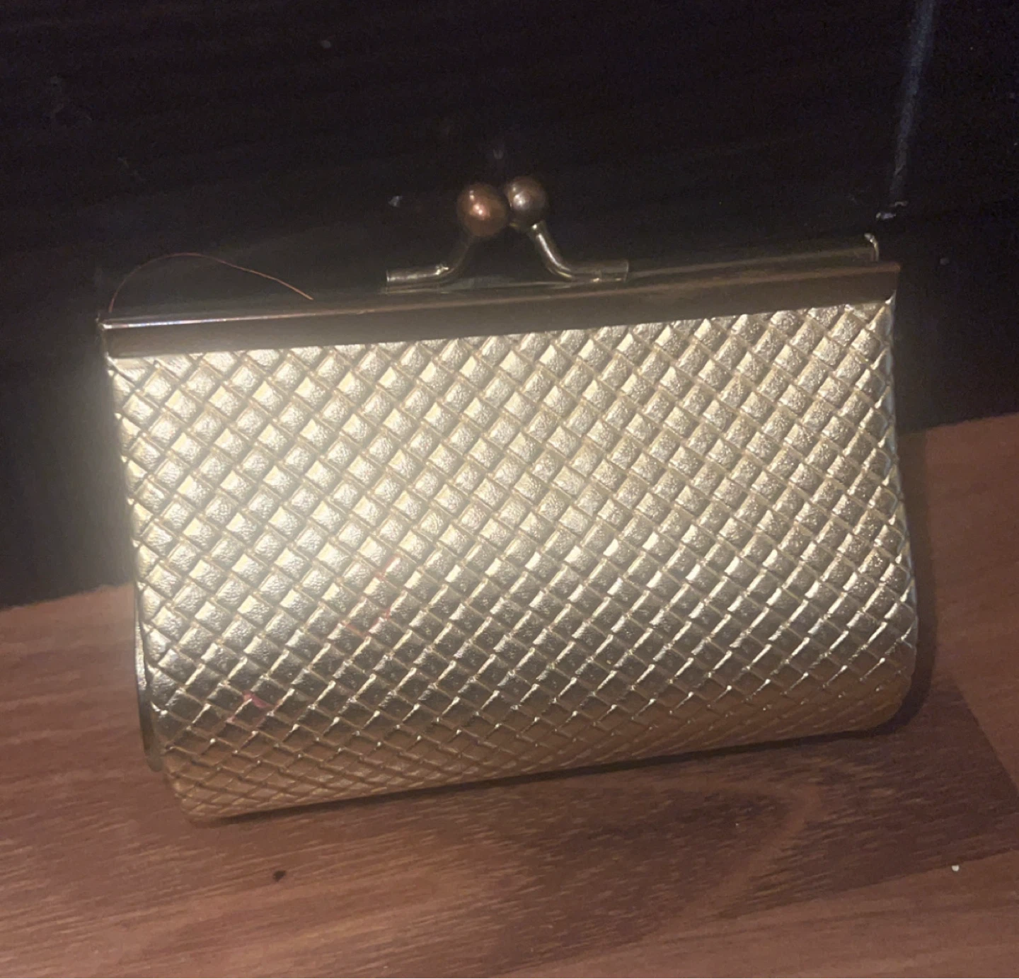 Selling a vintage gold coin purse! It has a unique woven pattern on the outside and