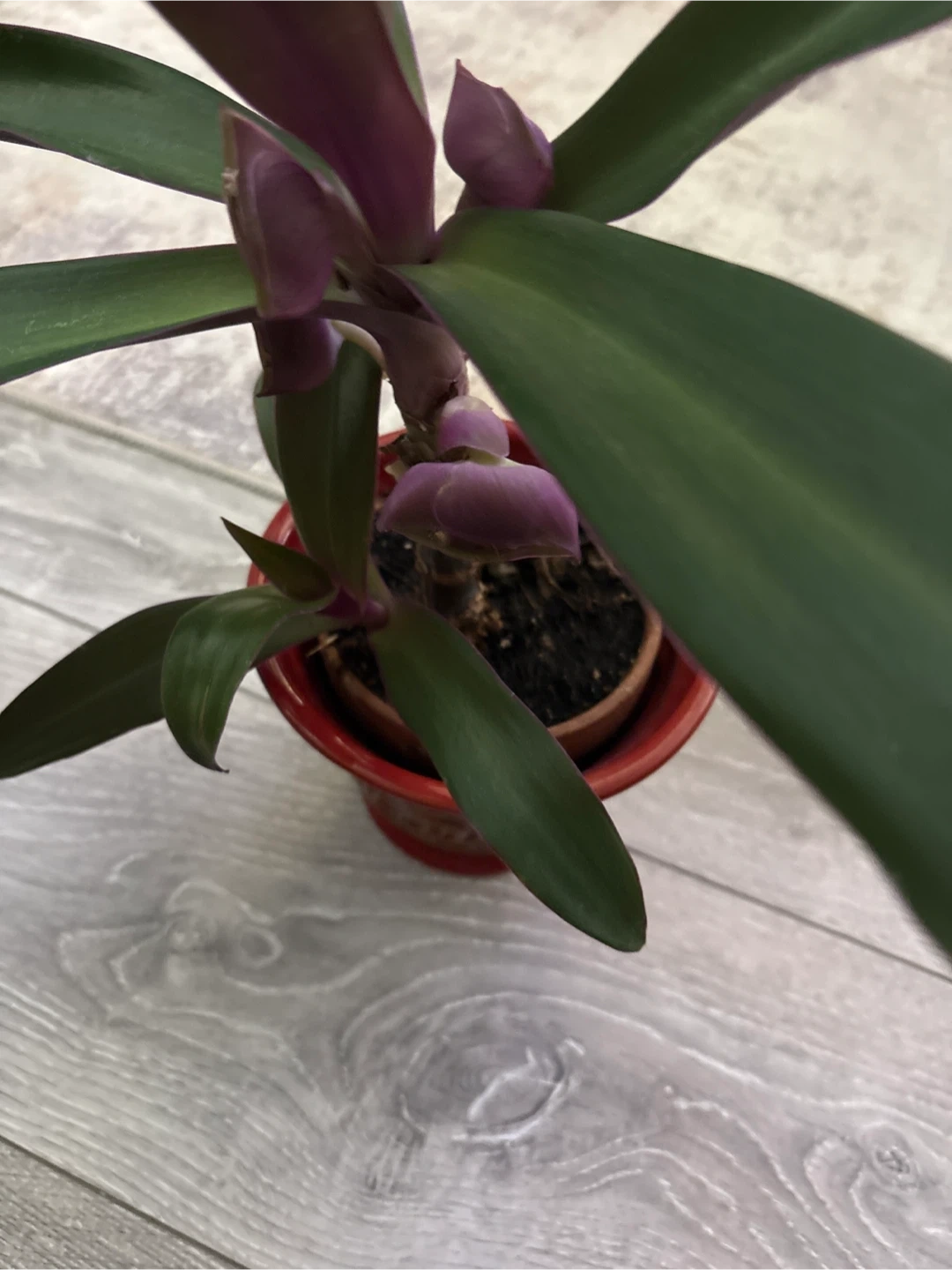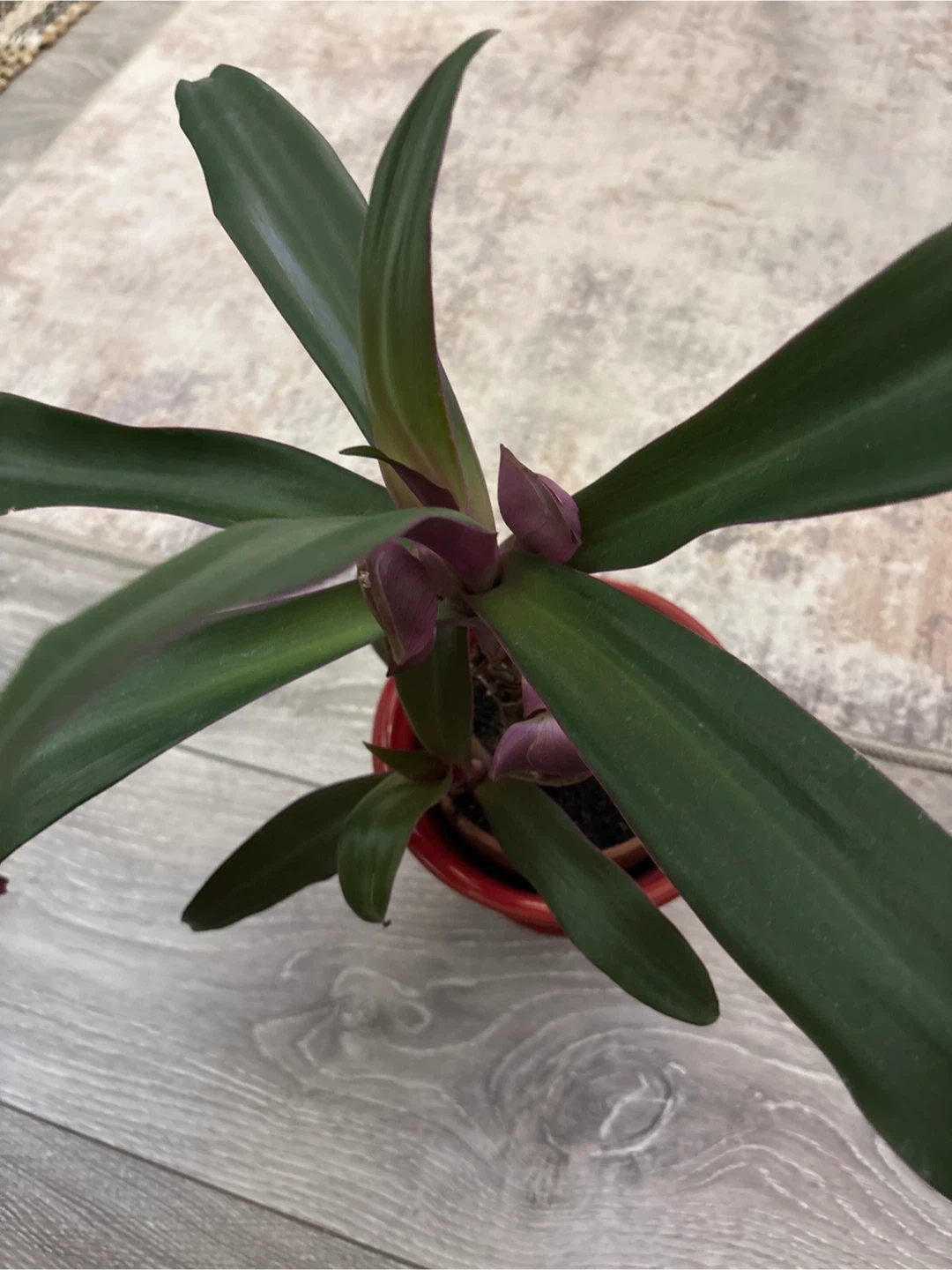 Selling a healthy Tradescantia spathacea, also known as an oyster plant! It's in a lovely red pot and ready to brighten up your space. This plant is known for its striking green leaves with purple undersides. Easy to care for and a great addition to any plant collection