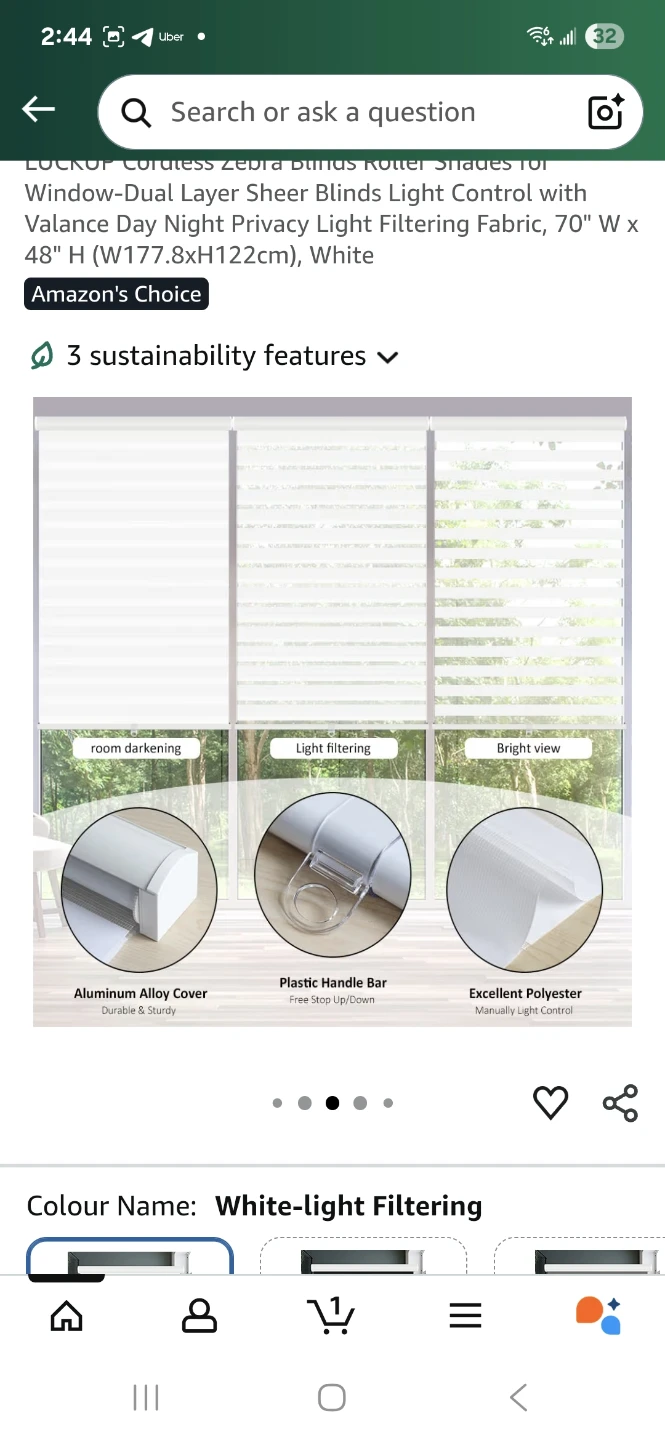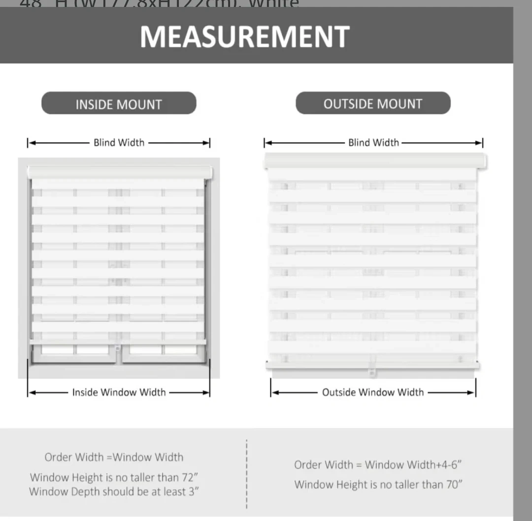 Selling a brand new set of cordless zebra blinds! These are white-light filtering and measure 70 inches wide by 48 inches high (177.8cm x 122cm). They offer window-dual layer sheer blinds with valance day night privacy and light filtering fabric. Great for adding a touch of elegance and privacy to any room!