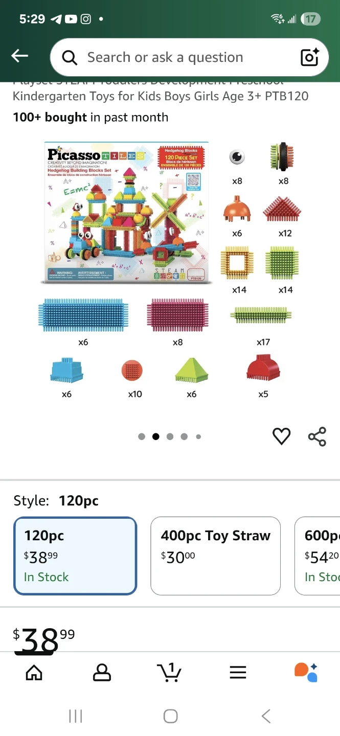 PicassoTiles Bristle Lock 3D Building Tiles, 120 Pieces