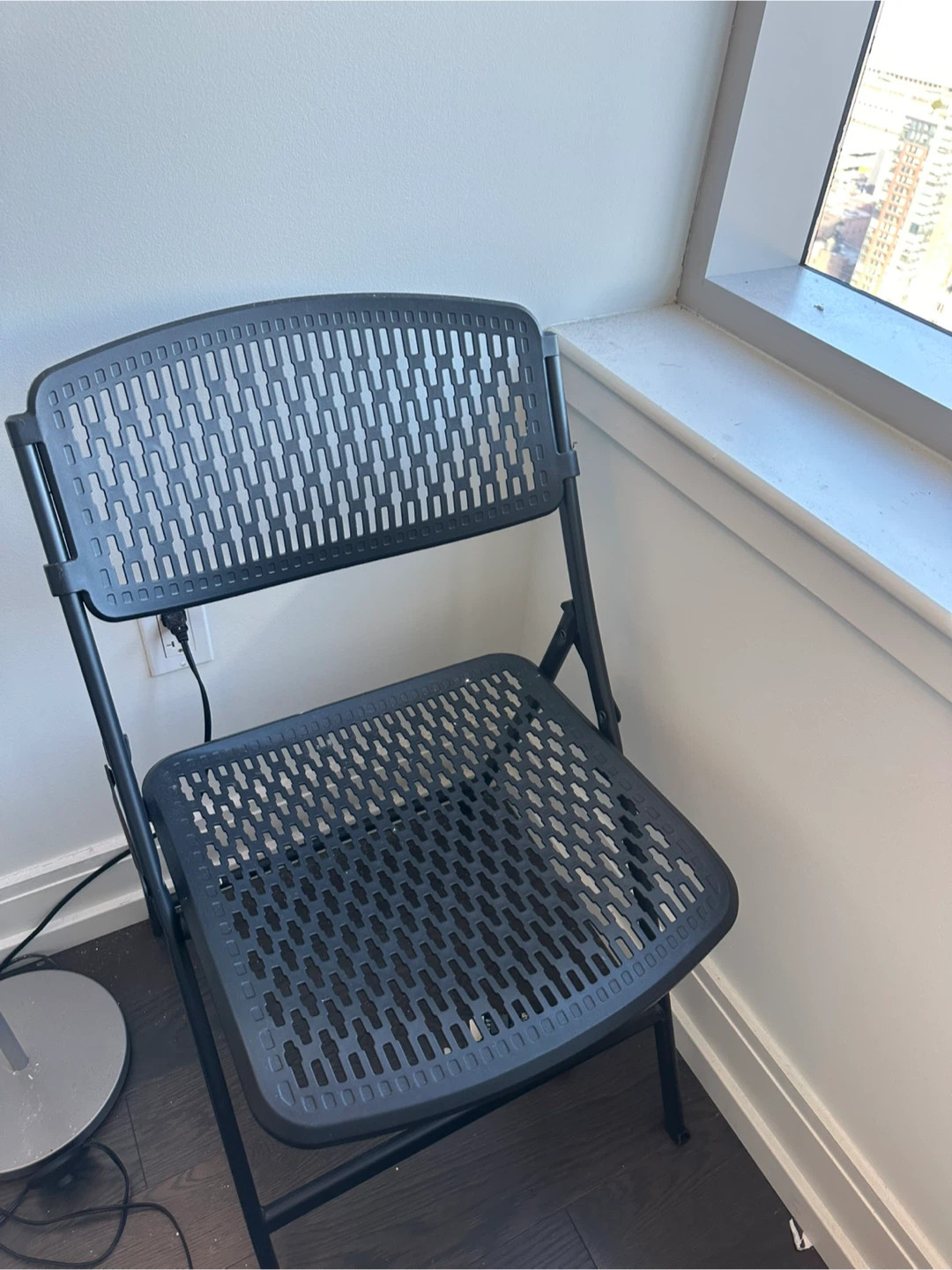 Selling two HDX black folding chair! It's super handy when you need an extra seat and folds away easily for storage. Perfect for small spaces or when guests come over. It's in great condition and ready for a new home