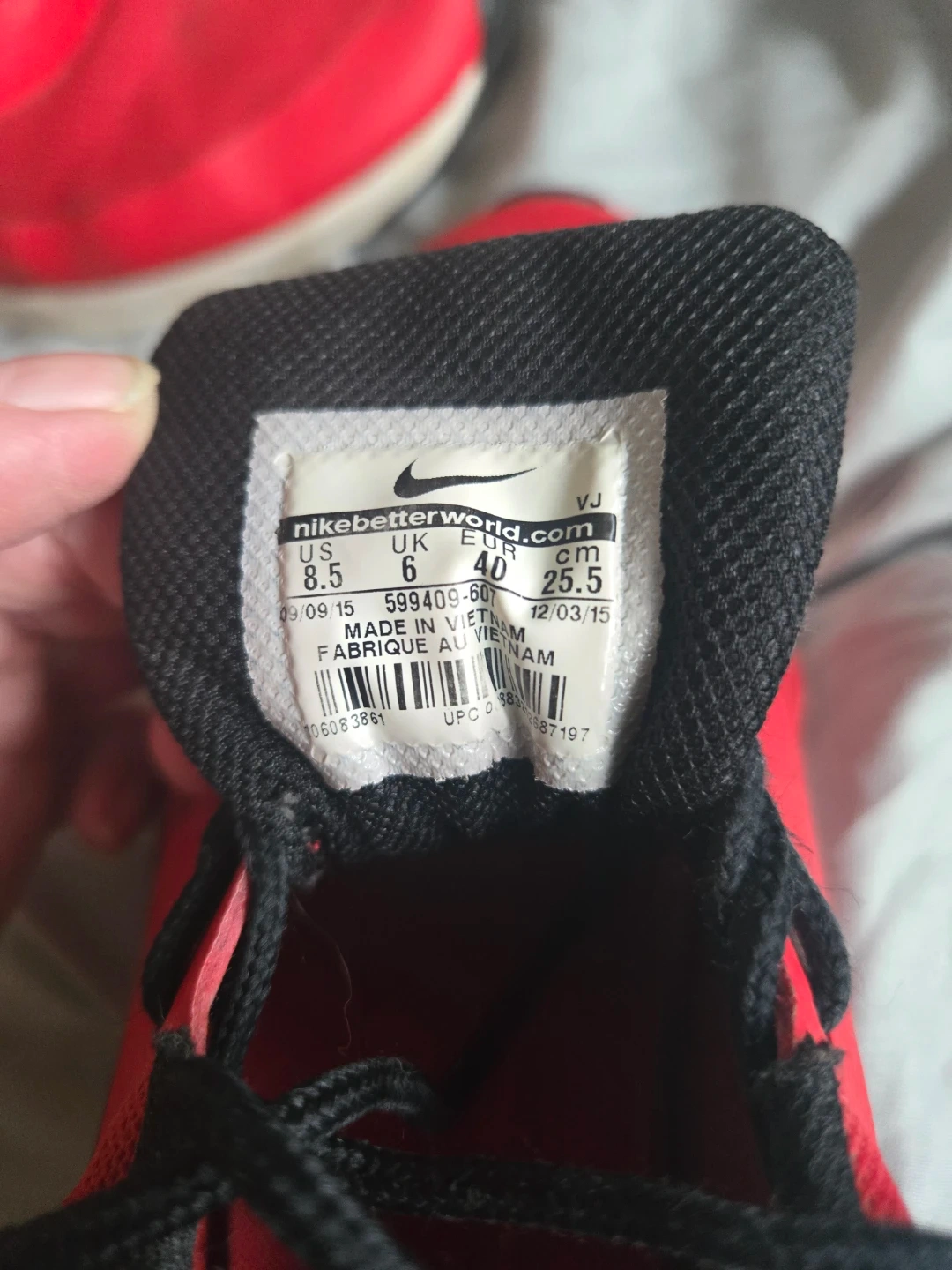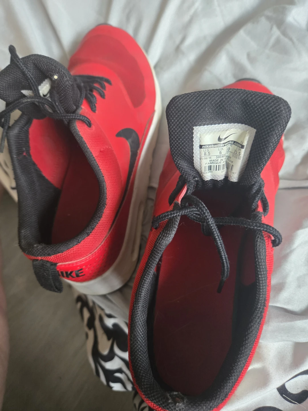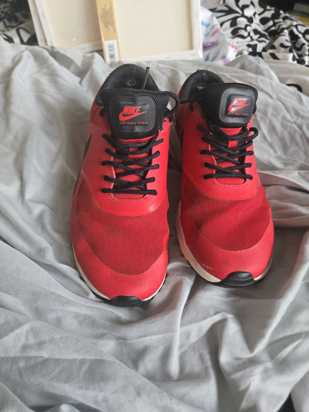 Selling a pair of Nike Air Max Thea sneakers in a vibrant red colour! They are in US size 8.5. These shoes have a sleek design and are perfect for everyday wear or workouts. Check out the photos for a closer look!
