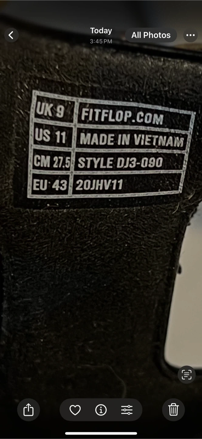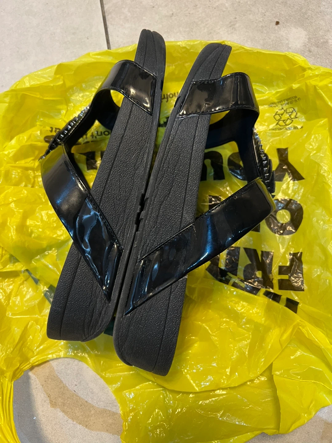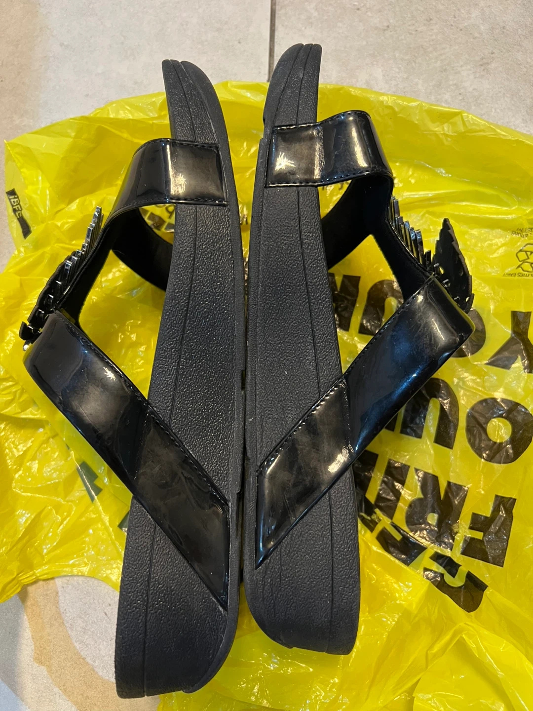 Selling a pair of Fitflop sandals in black, size US 11. They have a cute leaf design on the front!