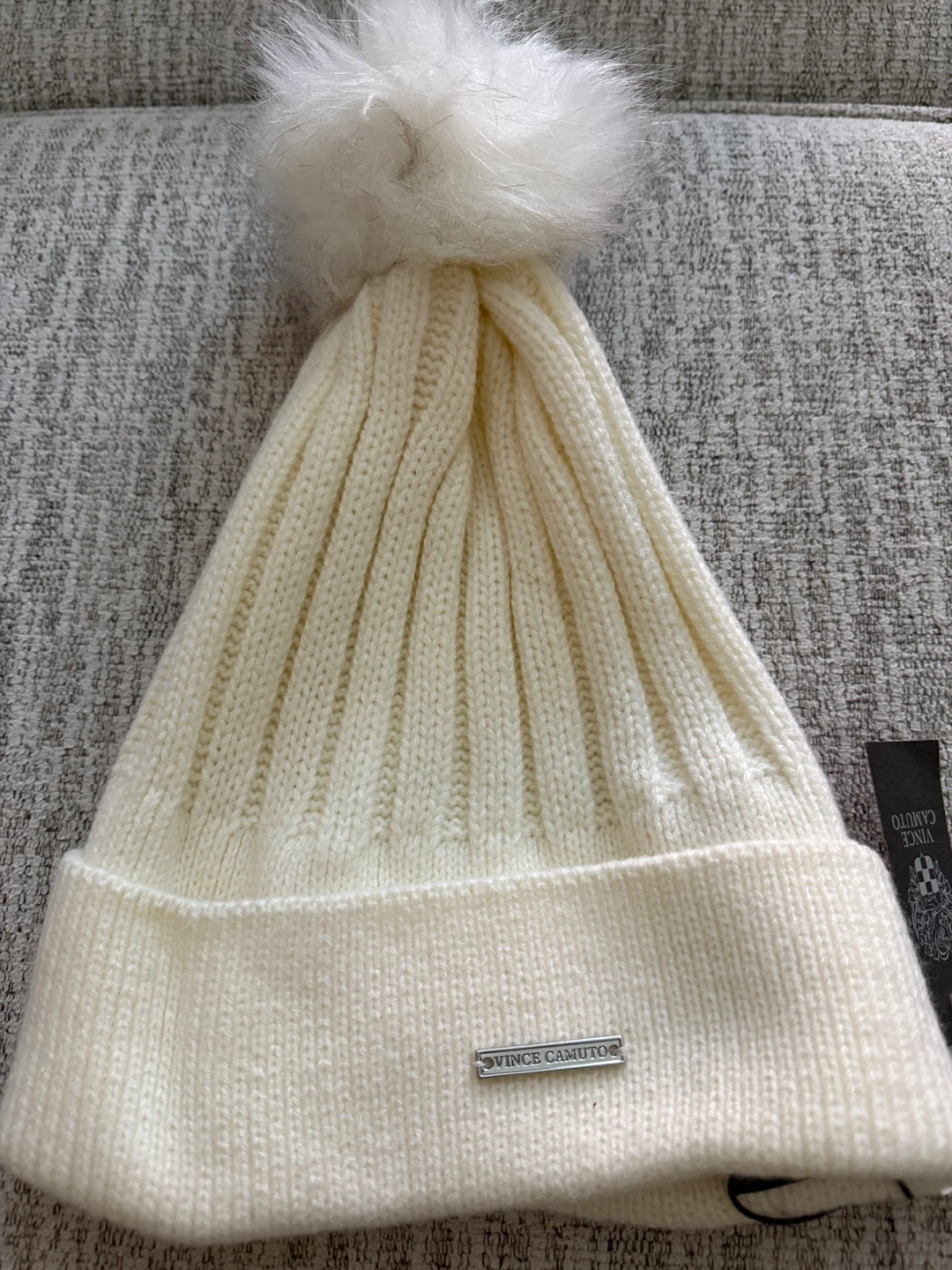 Vince Camuto Cream Knit Pom Pom Beanie New with tags