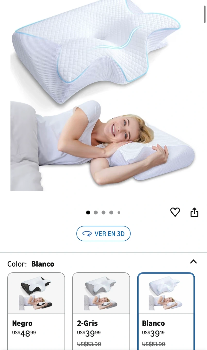 I'm selling a contour memory foam pillow in white. It's designed with two sides to choose from: horn side and roll side.